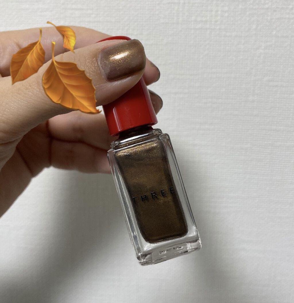 #three#ネイルポリッシュ の限定色 x50WISE3秋、冬っぽいネイルを探していたところ、こちらの商品を見つけて購入しました🍁メタリックなブラウンでとってもかわいいです🍂色黒な私にも馴染む色合いで良かったです☺️一度塗りでも写真のように...