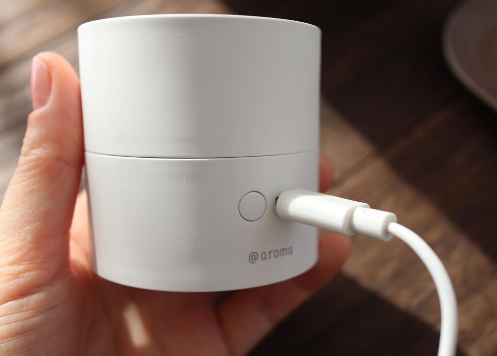 ブラウンの小さな手のりサイズのディフューザー。コロンとしていてとても可愛いデザイン。 オイルパッドが内蔵されているので、付属のアロマオイルを垂らすだけ。USB、電池両用使いも可能で携帯も出来るミニサイズ。 ハーバルシトラス10ml。ネロリやカモミール、オレンジなどフレッシュな香り。 スリープシープクールダウン10ml。夜用のリラックスタイムにオススメの香り。ラベンダーやミントの人気の高い香りでスムーズな入眠環境へ誘ってくれます。 届いてから毎日愛用しています。ライフスタイルにメリハリが叶う素敵なお品です。