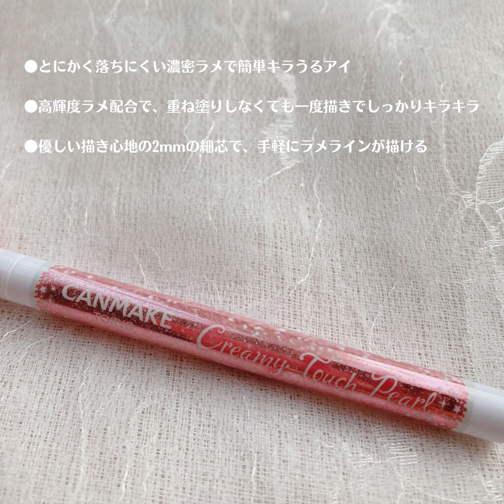 \下瞼の際にキラッ!/【CANMAKEクリーミータッチパール】☑️01ブライダルホワイトまるで純白ドレスのようにしっかりと輝くホワイト。下瞼にキラッとうるうる輝きをプラスできる極細ラメシャドウ2.0 mmの細芯、クリーミータッチの特徴であるス...