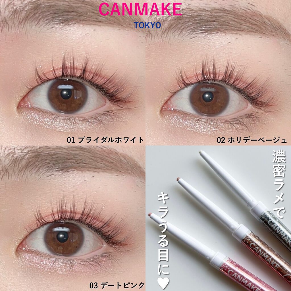 - とろける描き心地の極細ラメシャドウが限定新登場★ 下まぶたメイクを楽しむ✨ ピンポイントでラメラインを入れられる極細ラメシャドウ! 2mmの細芯で小回りが利くので細いラインが簡単に描ける♪ 柔らか芯なので、肌当たりはとても優しく、アイシャドウチップでのせるよりも手軽にラメラインが描けるアイテムです! 1度描きでしっかりキラキラする高輝度ラメで、重ね描きは不要* 1度乾いて密着すればとにかく落ちにくい✨水・汗・涙に強いウォータープルーフ処方!描きたての仕上がりを長時間キープ★