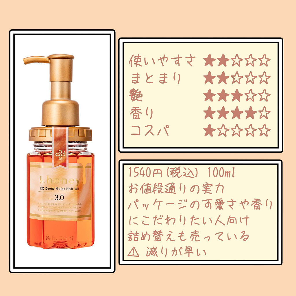&honey シルキー スムースモイスチャー ヘアオイル 3.0 | 1,540円 |