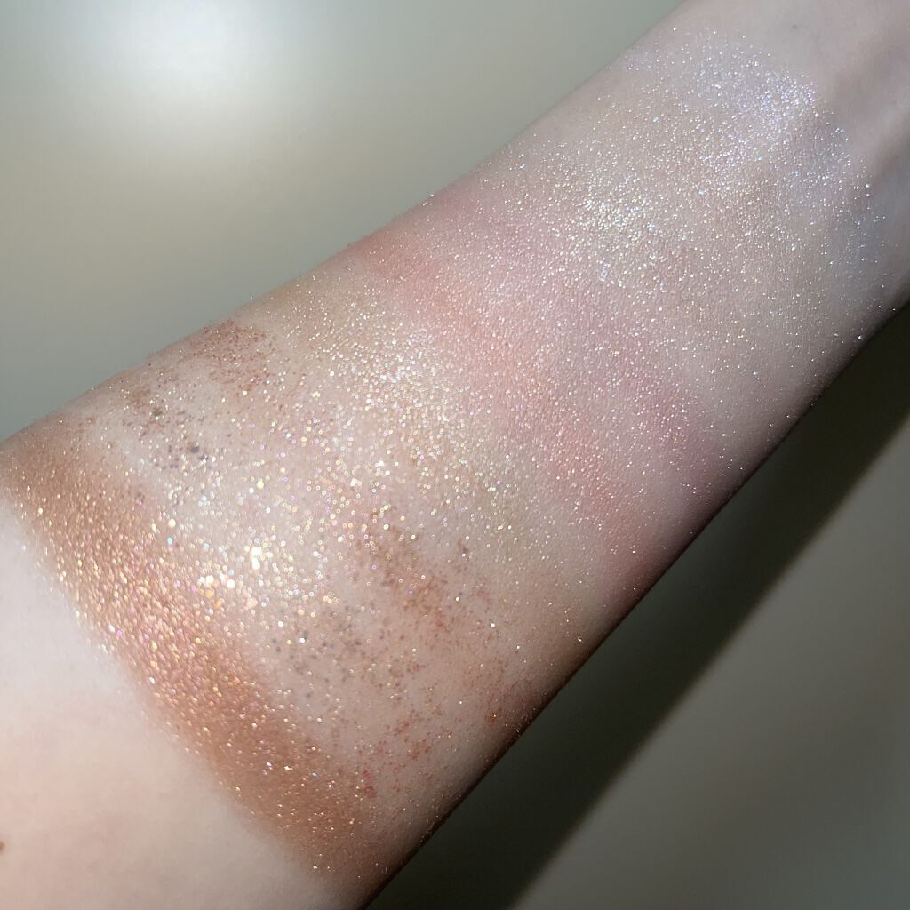 ADDICTIONの秋コレのパレットの中に入っているのに気づかず単色をお迎えしてしまいました😂笑 いざ単色で手に取ってみると可愛すぎて…! 太陽光での撮影なので少し暖かい感じに写っています。 1枚目でぎっしりの多色ラメ、伝わりますか?🥺 シンプルなメイクにたっぷり乗せてあげるのが可愛いです♡