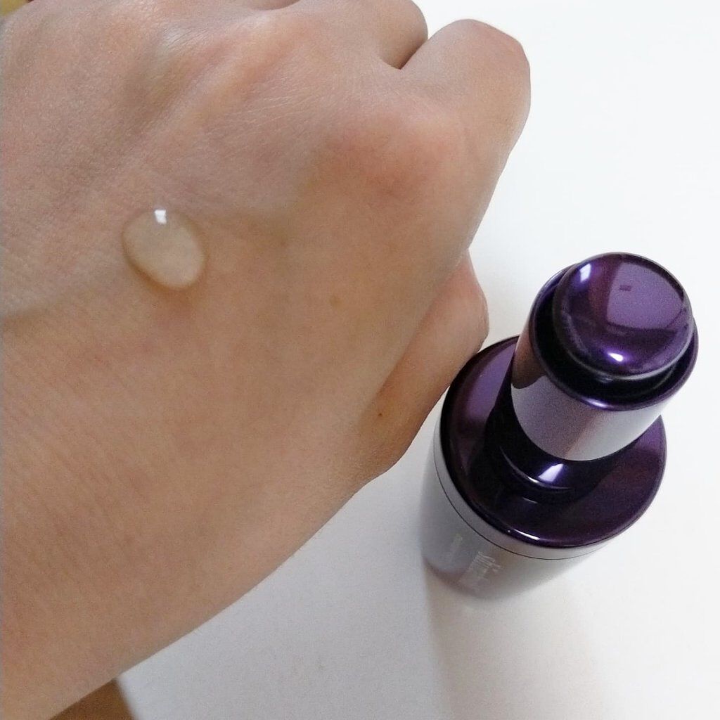 浸透力にこだわり、リポソーム化した、ヒト由来の幹細胞培養エキスを配合! ヒト脂肪細胞順化培養液というのは、健康的なヒトの脂肪から採取した脂肪由来の細胞を培養した培養液なのですが、様々な美容成分が含まれているのだそう。 更に、角質層まで浸透しやすくするために、リポソーム化! 他にもAPPS 浸透型ビタミンC誘導体や、セラミド1,3,6、機能性ペプチドを配合しています。 水のようにサラサラなテクスチャーで、手の甲に1滴落とすと、ツーッと流れてくるほど緩やか。 スポイトが固めで、しっかり取れているか心配になる方もいるかもしれませんが スポイト1吸いでだいたい2cmほど。 手の平に出した時、1円玉大位になります。 べたつきや香りなどもなく、使いやすいですよ。 そして、シマボシのシリーズはボトルが本当にキレイ。 紫のような青のようなカラーに惚れ惚れします。