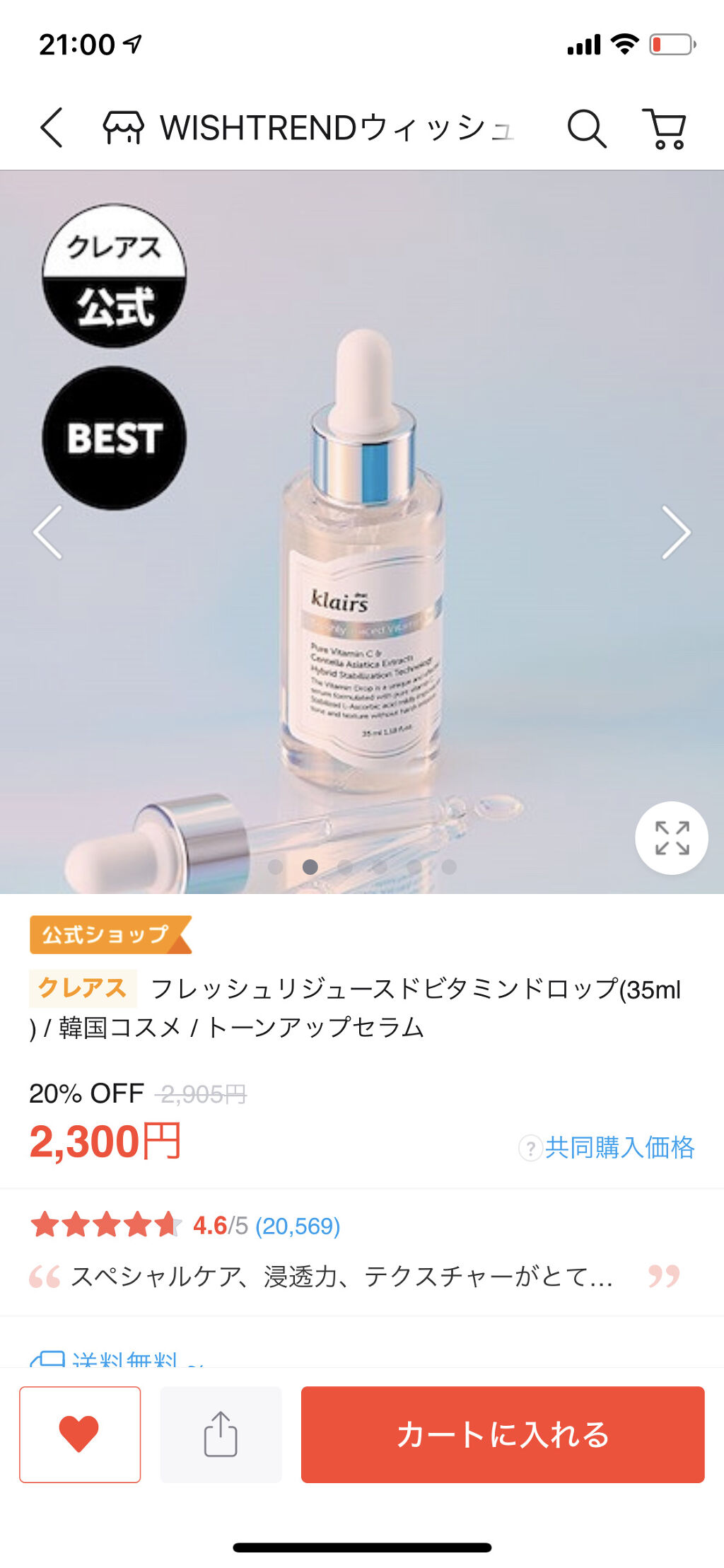 Klairs フレッシュリージュースドビタミンドロップ(35ml) | 2,300円 |