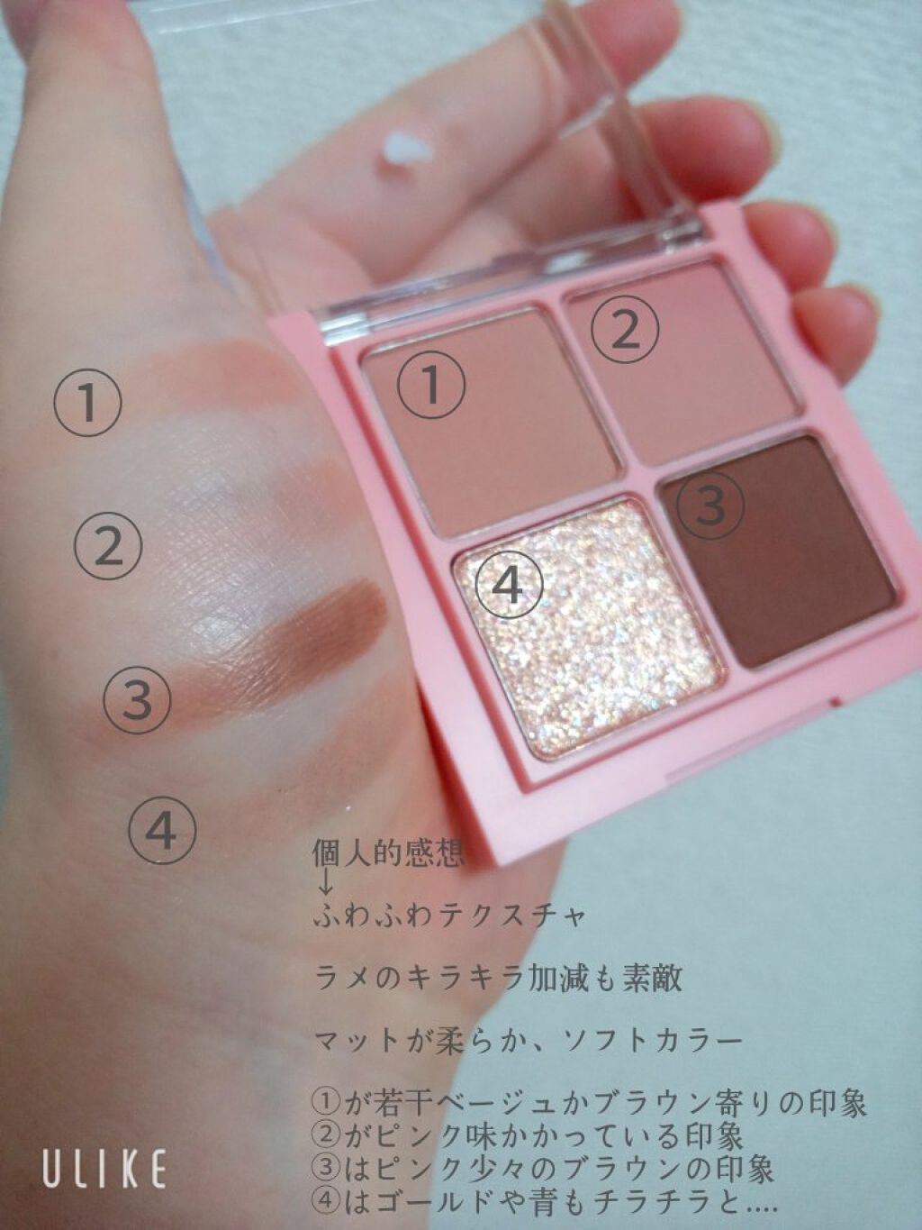 | アイシャドウパレットランキング第42位 | 4色で目元がめちゃくちゃ綺麗に仕上がる♡綺麗にラメが乗るので本当にかわいい! | 詳細を見る | |