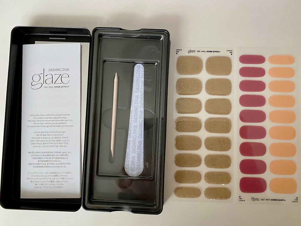 GLAZE 半硬化タイプジェルネイルシールのシリーズでUVライトが必要なものです! ネイルシールだと丸ごと取れるから取れてもきれいに取れる! こちらのカラーはBeige glam, ほんのりパールが入っていて可愛いです!