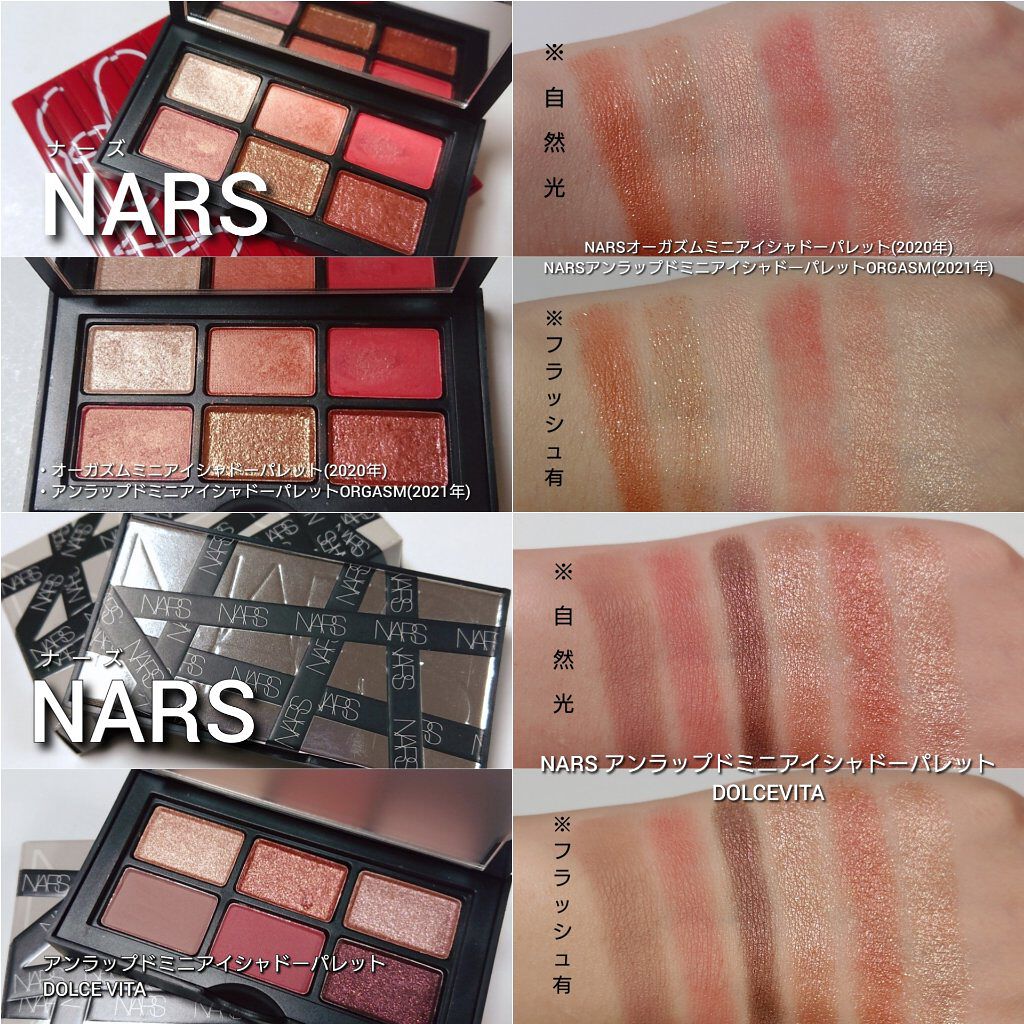 NARSアンラップドミニアイシャドーパレットORGASM限定のNARS💕4070円⭐️キラキラが可愛すぎるー❣️赤以外のカラーを使いました😊🩷手のひらサイズで可愛いー😭💕本当に買ってよかった💕お気に入りすぎる(៸៸᳐⦁⩊⦁៸៸᳐)੭゙ミニサイ...