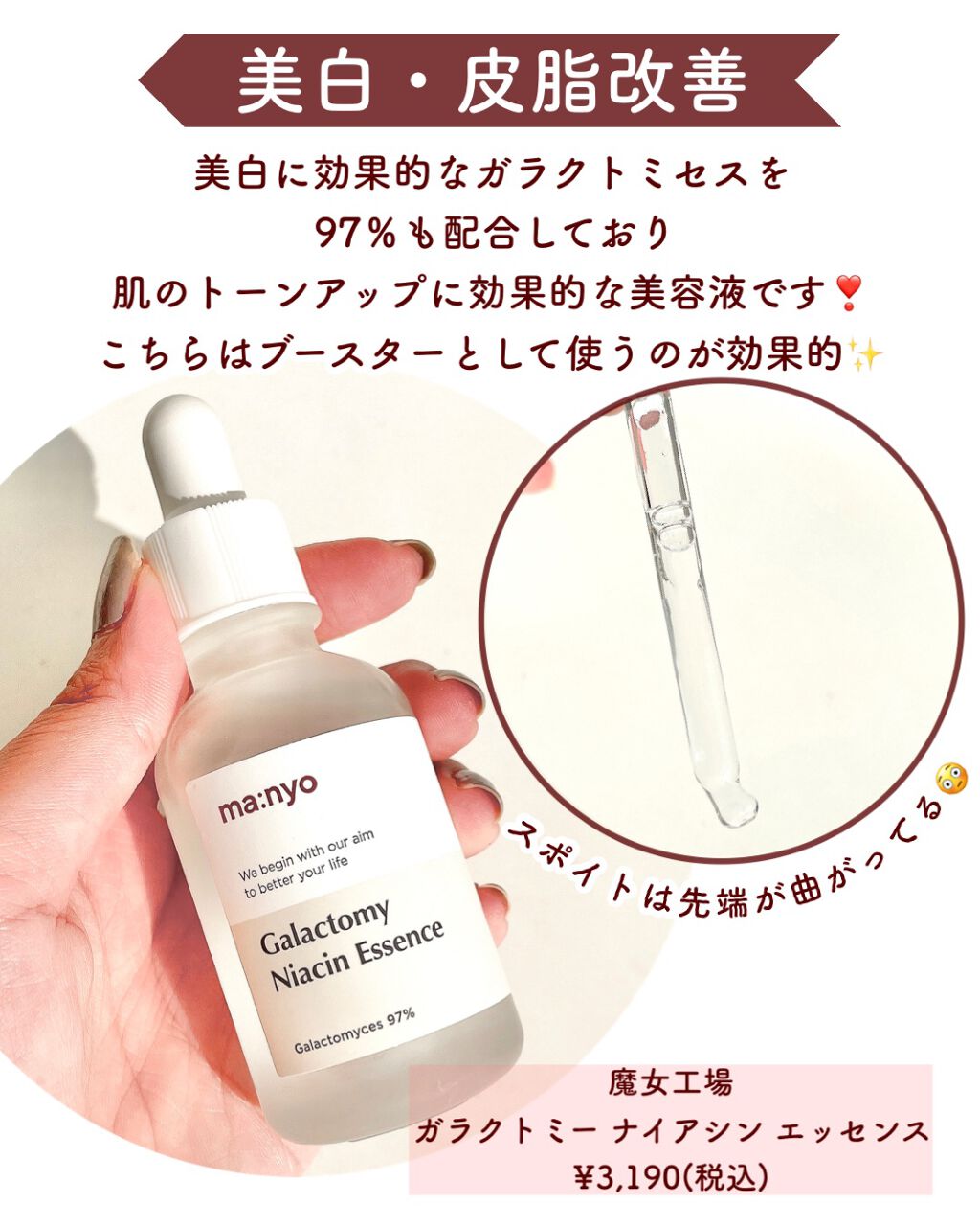 魔女工場ベストセラー美容液がリニューアルし、さらに第3世代に進化して新登場🐚.· テクスチャーは既存の2.0と同じく水のようにサラッとしていて使いやすい🫧 軽いので肌なじみが良く浸透も早い! 肌トーンやキメ、毛穴、シミなどあらゆる肌悩みに使える美容液です🤍