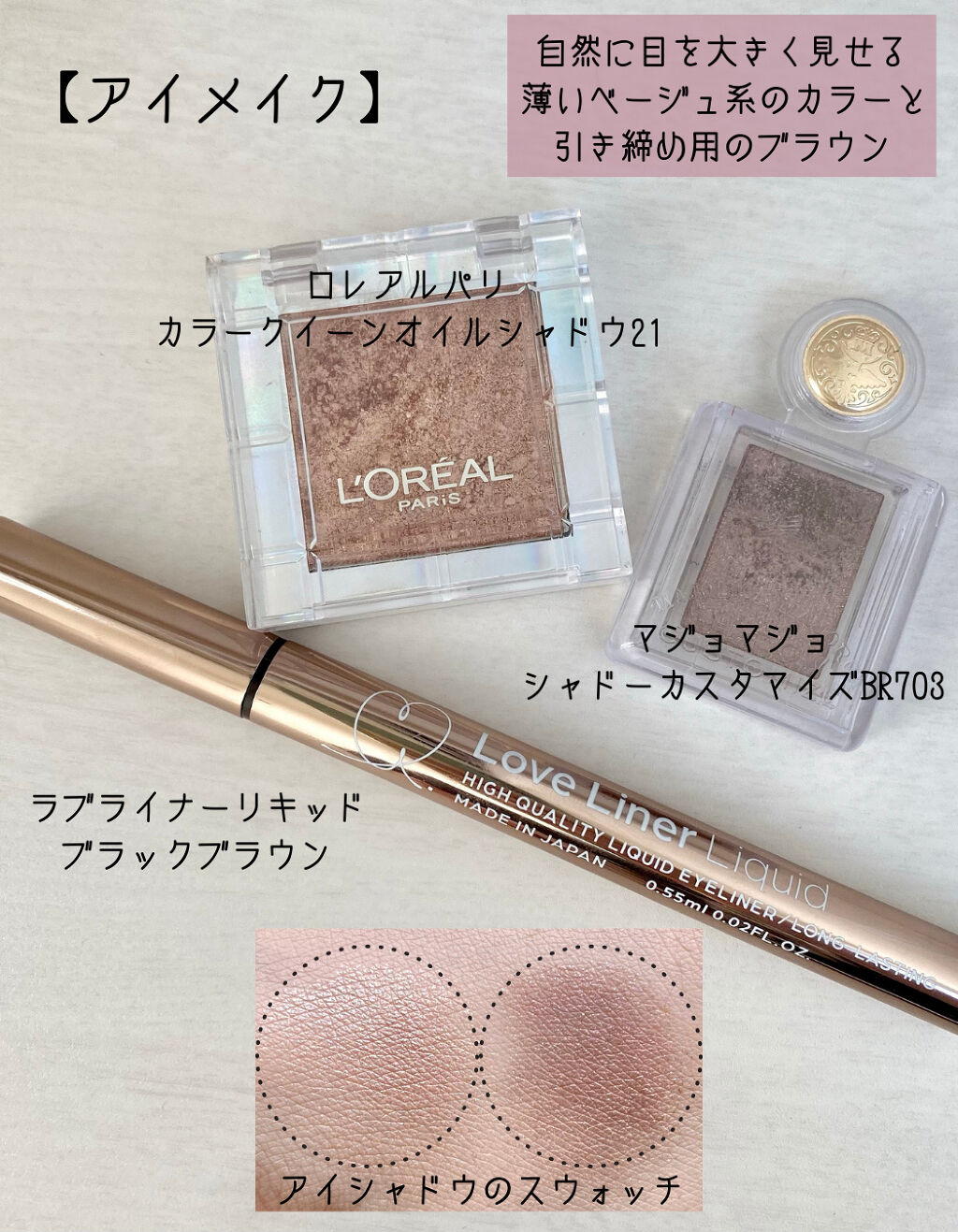CEZANNEナチュラル チークN14 ラベンダーピンク「走った…?」みたいに自然な血色感!ペタッとつかないので初心者にも◎ キャンメイクジューシーピュアアイズNo.10 ナイトラベンダーブルベ大優勝カラー!くすみが効いてて、紫派手だな…って印象にならない! ViséeアイブロウパウダーBR-2 ブラウン暗い髪色向け!アイブロウパウダーはリピートして2個目が底見えしてきた…👏スウォッチでもわかるふわっと発色が良い◎
