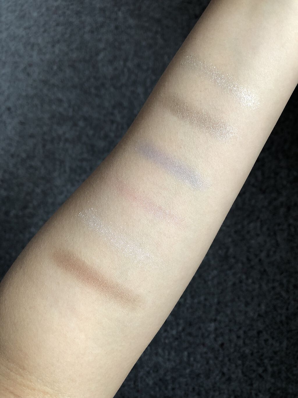 《数量限定》RMKプリズマティックラスターアイシャドウパレット02ガッツリラメ系の物かと思ったら塗り方次第で色んな使い方ができます!難しいって方は2色だけ組み合わせて使うとごちゃごちゃにならず塗りやすいと思います😊例えば締め色のブラウン(右下...