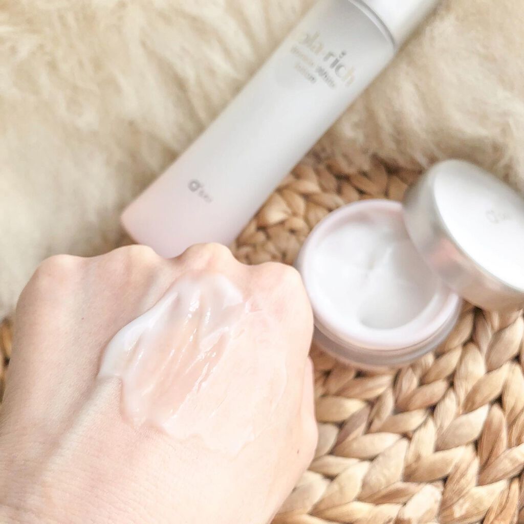 容器はジャータイプ。 ほんのり黄みがかったテクスチャーは、やわらかでこっくりしてそうな、ちょっとおいしそうな見た目をしています。 めちゃくちゃ伸びるやん!!! 真珠由来の保湿成分や整肌成分がこれでもかと含まれており、保湿力も◎ ベタつかずしっとり包み込んでくれる使用感です。