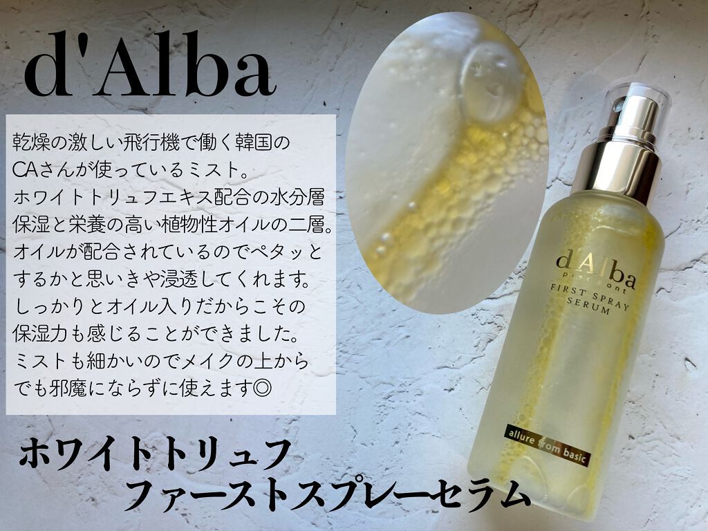 。.ꕤ‿ダルバホワイトトリュフファーストスプレーセラム‿ꕤ.。"CAミスト"人気だからずっと気になっていたけれど、オイルだから肌がべたつくイメージあって、肌に合わなかったらどうしよう…と買う勇気出ずだったのですが、ドンキでミニボトルが売ってい...