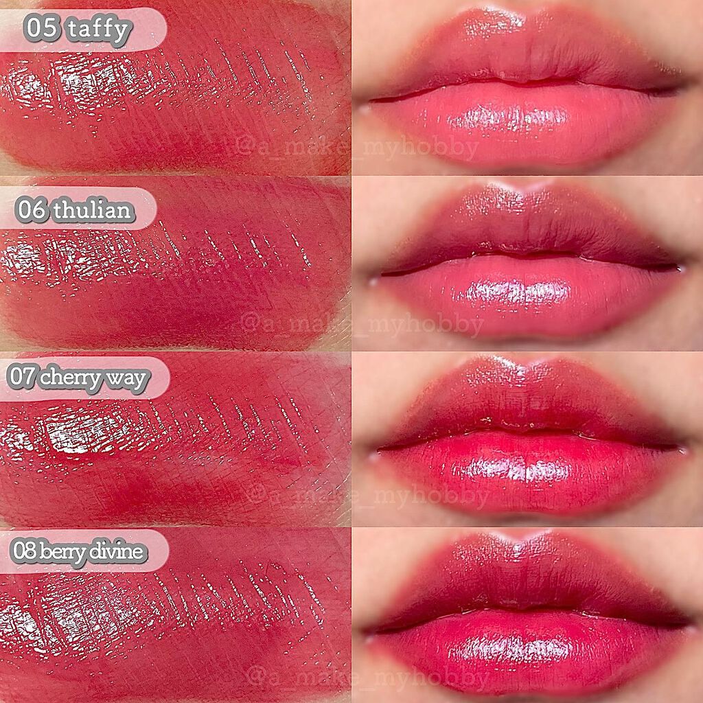 - <01 インコーラル> 水、ビスジグリセリルポリアシルアジペート-2、グリセリン、ジフェニルジメチコン、ジフェニルシロキシフェニルトリメチコン、ポリグリセリン-3、リンゴ酸ジイソステアリル、水添ポリイソブテン、ポリブテン、トリメチルシロキシフェニルジメチコン、変性アルコール、ポリソルベート60、イソノナン酸イソノニル、ペンチレングリコール、(アクリル酸ヒドロキシエチル/アクリロイルジメチルタウリンNa)コポ リマー、ラベンダーエキス、ハナハッカ花/葉/茎エキス、ローズマリーエキス、タイムエキス、ステアリン酸グリセリル、ステアリン酸PEG-100、スクワラン、ラウリルPEG-10トリス(トリメチルシロキシ)シリルエチルジメチコン、エチルヘキシルグリセリン、デキストリン、ステビオシド、イソステアリン酸ソルビタン、エチレンジアミンジコハク酸3Na、水酸化Al、ポリアクリル酸アンモニウム、BG、トコフェロール、フェノキシエタノール、香料、リモネン、酸化チタン、黄5、赤227、黄4、青1 <03 イフローズ> 水、ビスジグリセリルポリアシルアジペート-2、グリセリン、ジフェニルジメチコン、ジフェニルシロキシフェニルトリメチコン、ポリグリセリン-3、リンゴ酸ジイソステアリル、水添ポリイソブテン、ポリブテン、トリメチルシロキシフェニルジメチコン、変性アルコール、ポリソルベート60、イソノナン酸イソノニル、ペンチレングリコール、(アクリル酸ヒドロキシエチル/アクリロイルジメチルタウリンNa)コポリマー、ラベンダーエキス、ハナハッカ花/葉/茎エキス、ローズマリーエキス、タイムエキス、ステアリン酸グリセリル、ステアリン酸PEG-100、スクワラン、ラウリルPEG-10トリス(トリメチルシロキシ)シリルエチルジメチコン、エチルヘキシルグリセリン、デキストリン、ステビオシド、トリイソステアリン酸ポリグリセリル-2、イソステアリン酸ソルビタン、エチレンジアミンジコハク酸3Na、水酸化Al、ポリアクリル酸アンモニウム、BG、トコフェロール、フェノキシエタノール、香料、リモネン、酸化チタン、黄5、赤227、青1、黄4、赤218 <04 チリアップ> 水、ビスジグリセリルポリアシルアジペート-2、グリセリン、ジフェニルジメチコン、ジフェニルシロキシフェニルトリメチコン、ポリグリセリン-3、リンゴ酸ジイソステアリル、水添ポリイソブテン、ポリブテン、トリメチルシロキシフェニルジメチコン、変性アルコール、ポリソルベート60、イソノナン酸イソノニル、ペンチレングリコール、(アクリル酸ヒドロキシエチル/アクリロイルジメチルタウリンNa)コポ リマー、ラベンダーエキス、ハナハッカ花/葉/茎エキス、ローズマリーエキス、タイムエキス、ステアリン酸グリセリル、ステアリン酸PEG-100、スクワラン、ラウリルPEG-10トリス(トリメチルシロキシ)シリルエチルジメチコン、エチルヘキシルグリセリン、デキストリン、ステビオシド、イソステアリン酸ソルビタン、エチレンジアミンジコハク酸3Na、トコフェロール、BG、フェノキシエタノール、料、リモネン、黄5、赤227、黄4、青1 <06 チュリアン> 水、ビスジグリセリルポリアシルアジペート-2、グリセリン、ジフェニルジメチコン、ジフェニルシロキシフェニルトリメチコン、ポリグリセリン-3、リンゴ酸ジイソステアリル、水添ポリイソブテン、ポリブテン、トリメチルシロキシフェニルジメチコン、変性アルコール、ポリソルベート60、イソノナン酸イソノニル、ペンチレングリコール、(アクリル酸ヒドロキシエチル/アクリロイルジメチルタウリンNa)コポリマー、ラベンダーエキス、ハナハッカ花/葉/茎エキス、ローズマリーエキス、タイムエキス、ステアリン酸グリセリル、ステアリン酸PEG-100、スクワラン、ラウリルPEG-10トリス(トリメチルシロキシ)シリルエチルジメチコン、エチルヘキシルグリセリン、デキストリン、ステビオシド、イソステアリン酸ソルビタン、エチレンジアミンジコハク酸3Na、水酸化Al、ポリアクリル酸アンモニウム、BG、トコフェロール、フェノキシエタノール、香料、リモネン、酸化チタン、黄5、赤227、酸化鉄、黄4、赤218、青1 <08 ベリーディヴァイン> 水、ビスジグリセリルポリアシルアジペート-2、グリセリン、ジフェニルジメチコン、ジフェニルシロキシフェニルトリメチコン、ポリグリセリン-3、リンゴ酸ジイソステアリル、水添ポリイソブテン、ポリブテン、トリメチルシロキシフェニルジメチコン、変性アルコール、ポリソルベート60、イソノナン酸イソノニル、ペンチレングリコール、(アクリル酸ヒドロキシエチル/アクリロイルジメチルタウリンNa)コポリマー、ラベンダーエキス、ハナハッカ花/葉/茎エキス、ローズマリーエキス、タイムエキス、ステアリン酸グリセリル、ステアリン酸PEG-100、スクワラン、ラウリルPEG-10トリス(トリメチルシロキシ)シリルエチルジメチコン、エチルヘキシルグリセリン、イソステアリン酸ソルビタン、デキストリン、ステビオシド、エチレンジアミン