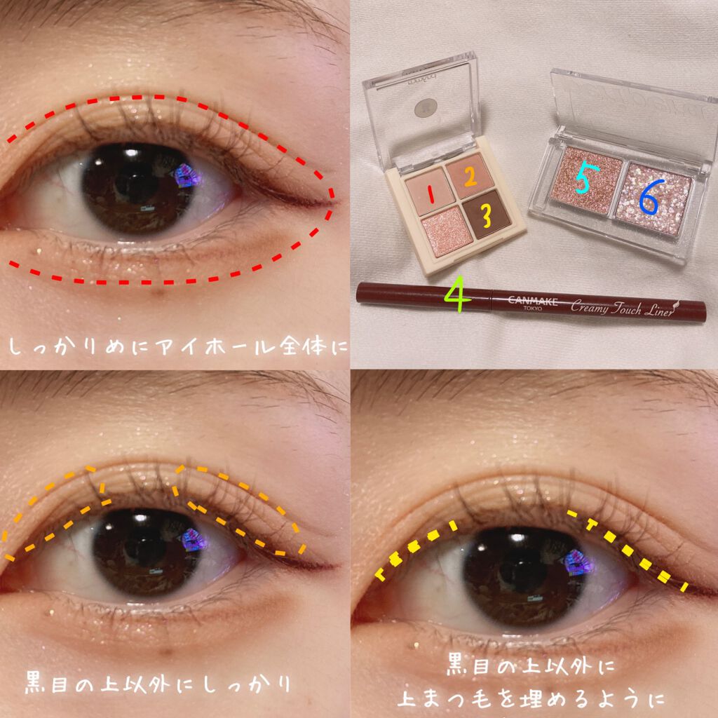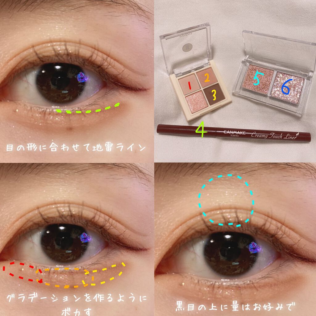 アイシャドウ👀・CLIOプロ アイ パレット01SIMPLY PINK グリッター✨・PERIPERAデュオ ポケット グリッター シャドウ03SALTED SUGARPLUM 涙袋のコンシーラー👧・キャンメイクカラーミキシングコンシーラーオレンジベージュ マスカラ💇♀️・rom&ndハンオールフィックスマスカラL02LONG ASH アイライン✏️・キャンメイククリーミータッチライナーダークブラウン・CEZANNE極細アイライナーEX20ブラウン