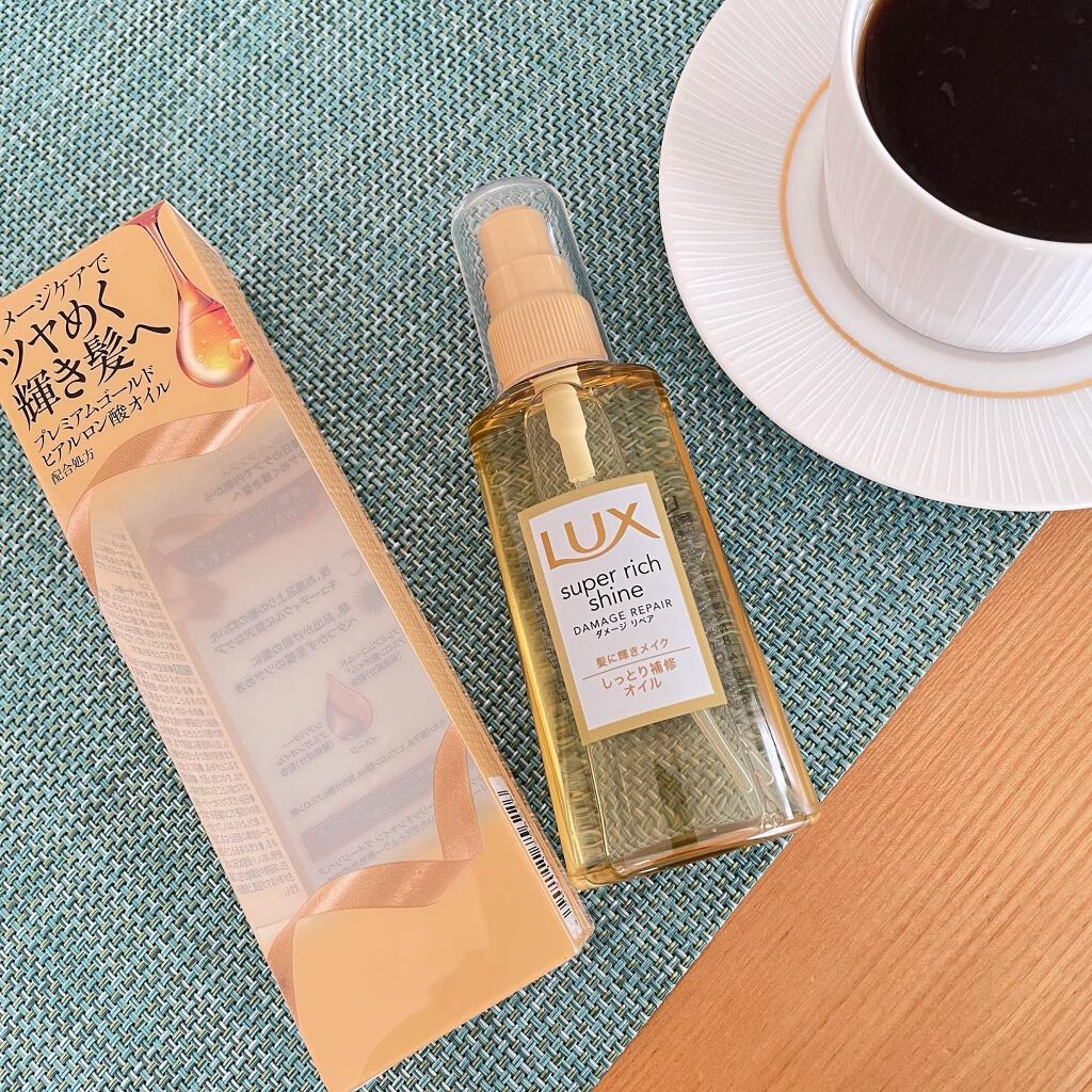 - 【傷んだ髪用】 ●洗い流さないトリートメント:ダメージケアでツヤめく輝き髪へ ●プレミアムゴールドヒアルロン酸オイル*1 (保湿成分)配合。髪を補修コーティング。 ●シアバター・アルガンオイル(補修成分)配合。 ●夜、お風呂上りの髪の開いたキューティクルに贅沢なケア ●朝、お出かけ前の髪もベタつかず至福のツヤめき ●朝摘み果実とウォーターブロッサムを感じさせる香り ●ラックス スーパーリッチシャインダメージリペア シリーズでお使いいただくとより一層効果的です。 *1 ホホバ種子油、ヒアルロン酸ヒドロキシプロピルトリモニウム、加水分解ヒアルロン酸