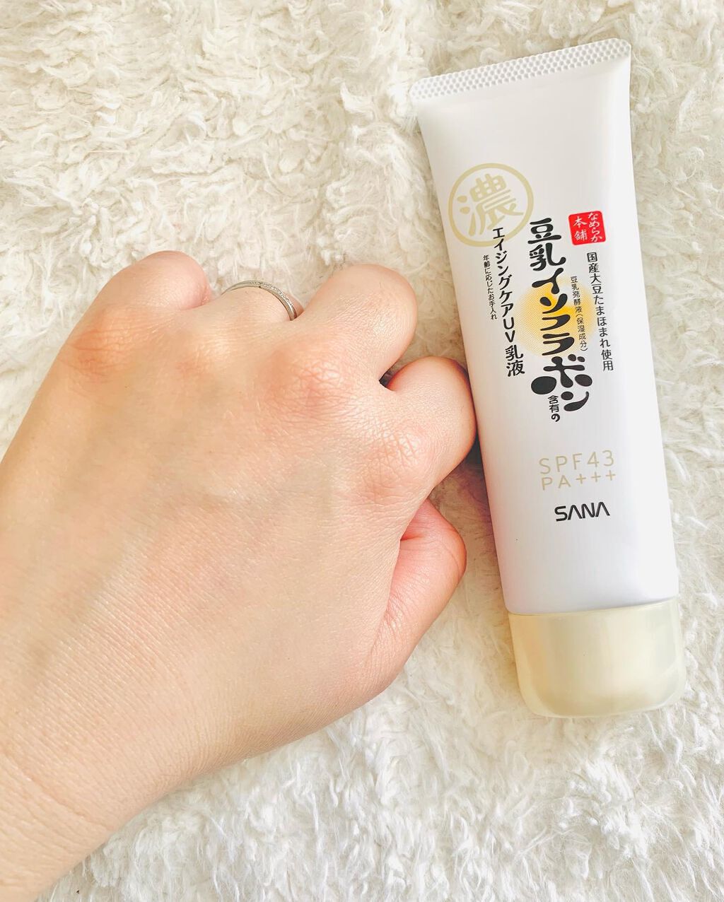 - ほうれい線・小じわのメイクよれが気になる方におすすめの日中用カバーUV 乳液です。リニューアルしたなめらか本舗エイジングケア*1ライン共通の、滋賀県産たまほまれ使用の豆乳発酵液*2とピュアレチノール*2を配合しています。リンクルリフレクト効果で、ほうれい線や小じわを目立たなくし、時間が経ってもメイクよれが気にならない処方を採用しました。お肌にうれしいノンケミカル(紫外線吸収剤不使用)処方で、洗顔後これ 1 つでスキンケアからベースメイクまで完成。 乾燥による小じわを目立たなくします(効能評価試験済み)。 SPF43・PA+++、石けんでオフできます。 *1年齢に応じたお手入れ *2保湿成分
