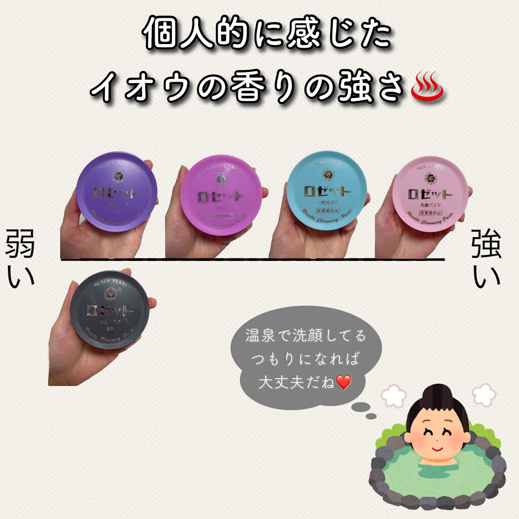 ドラストに必ず置いてあるロゼットシリーズ!学生の頃の思春期ニキビによく使ってたな💭 【思春期の肌荒れの人におすすめ】・ピンク:普通肌の人・黒:毛穴レス肌になりたい人・水色:荒性肌の人・紫:透明感肌になりたい人 【大人の肌悩みにおすすめ】・黄色:くすみが気になる人・ピンク:乾燥肌の人・緑:毛穴汚れが気になる人