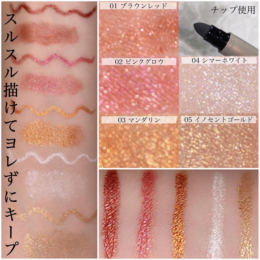- 微細カラーパールが、肌に溶け込むような自然なツヤを生み出す、“グロウ”質感のカラーライナー。 奥ゆきあるキレイ色が自然となじむ、抜け感あふれる新質感のカラーラインが落ちにくく、長時間続きます。 ●光の粒で作る 奥ゆきあるキレイ色 ●肌に溶け込む ‘グロウ(自然なツヤ)’ 効果 ●スルスル描けてヨレにくく長時間キープ[ウォータープルーフ]