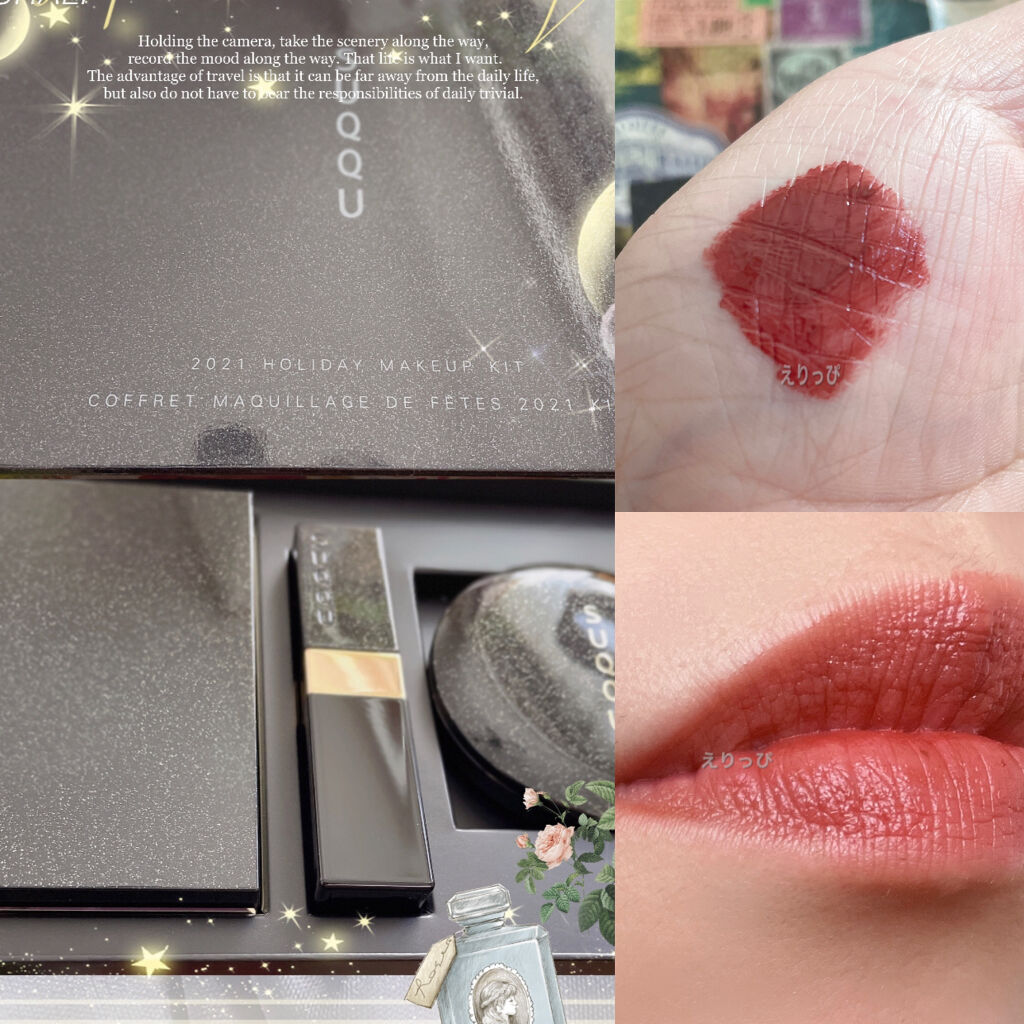 - 数量限定発売 ■2021 ホリデー メイクアップ キット A:雪景色に映える椿のような、凛とフェミニンな表情に。鮮やかな色合いに、澄んだ煌めきを添えて、上品な冬の美しさを表現。 ・シグニチャー カラー アイズ 110 花雪見 -HANAYUKIMI (6.2g) チップ・ブラシ付 ・ムーングリーム ハイライター&ブラッシュ 101 虹月 -NIJITSUKI (5.4g) ・コンフォート リップ フルイド グロウ 106 冬実 -TOUJITSU (3.3g) ミニサイズ ■2021 ホリデー メイクアップ キット B:冬の柑橘や樹の花のように、温かな表情に。旬のアースカラーに、華やぐ煌めきを添えて、寛いだ大人の美しさを表現。 ・シグニチャー カラー アイズ 111 月輝夜 -TSUKIKAGUYA (6.2g) チップ・ブラシ付 ・ムーングリーム ハイライター&ブラッシュ 102 月景 -TSUKIKAGE (5.4g) ・コンフォート リップ フルイド グロウ 107 蜜柿 -MITSUKAKI (3.3g) ミニサイズ