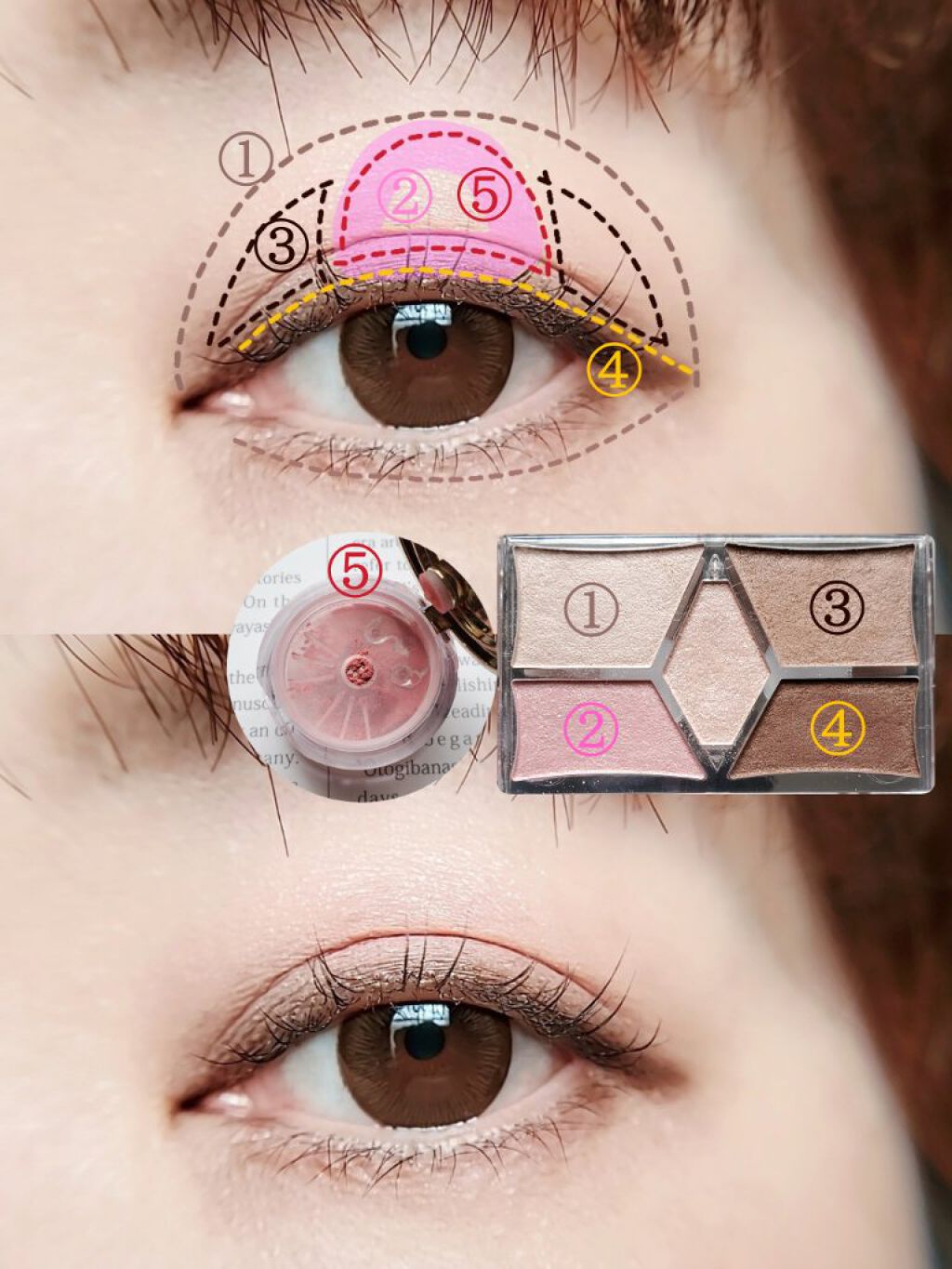 可愛い色味で、こういうカラーバランスのパレットは持っていなかったので見た目で選びました。 ほんわかした可愛らしいピンクとオレンジに、シルバーのニュアンスをプラス。うるっとした目元を演出する抜け感パレット。