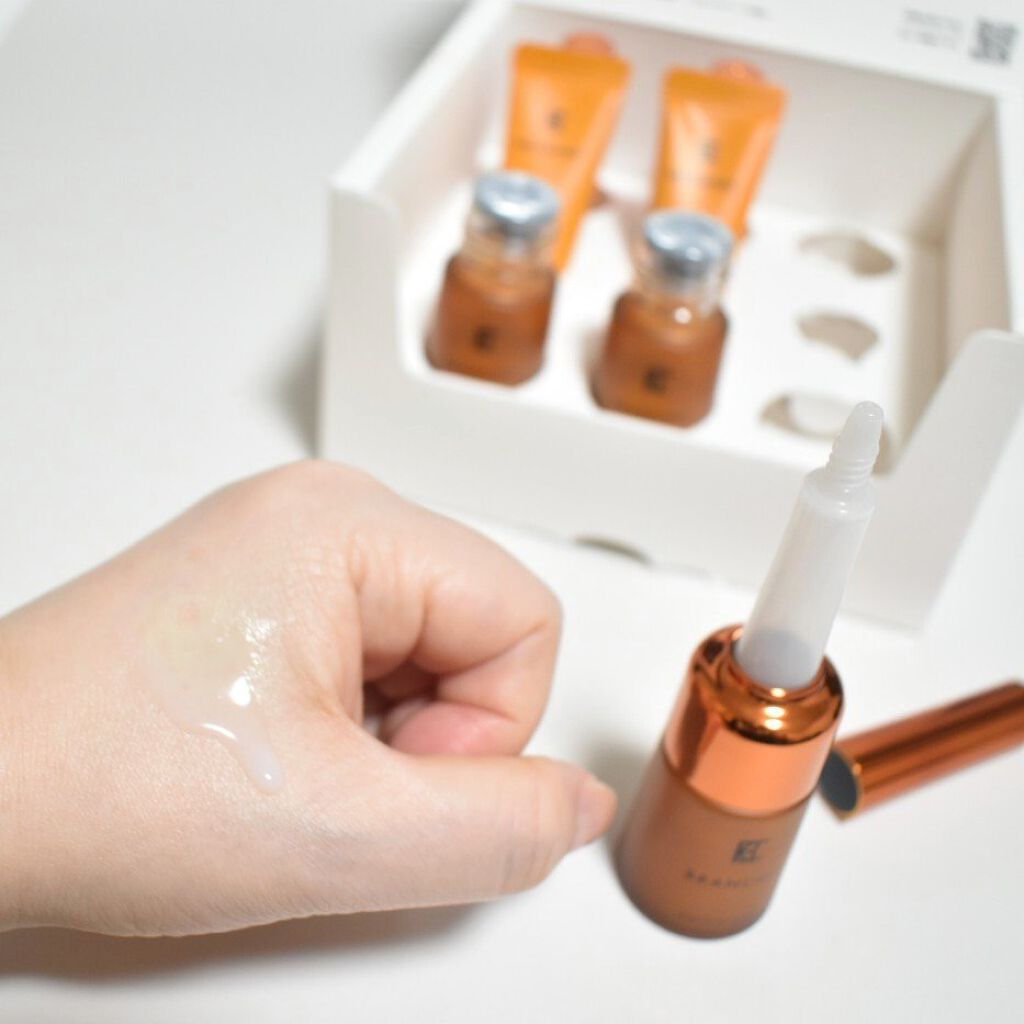 - ◆肌悩みを多角的にケアして肌感覚に働きかける美容液です。1剤のパウダーと2剤のエッセンスを混合して使用します。 ◆1剤のパウダーは、肌悩みを速攻ケアする-40℃凍結乾燥VC(APPS+)をメインとした美容液パウダーです。多角的な肌悩みにアプローチしながらハリやキメ、透明感のある肌に導きます。 ◆2剤のエッセンスは、デカペプチドをメインとした美容液です。肌感覚を高めて外的ダメージから肌を守りながら、バリア機能を高めてハリや弾力に満ちた肌に導きます。 ◆混合することで、とろみのある濃厚な美容液となり、しっとりなめらかな使い心地です。また、使用後の肌は、外的ストレスにも負けない、しなやかなハリ肌が実感できます。