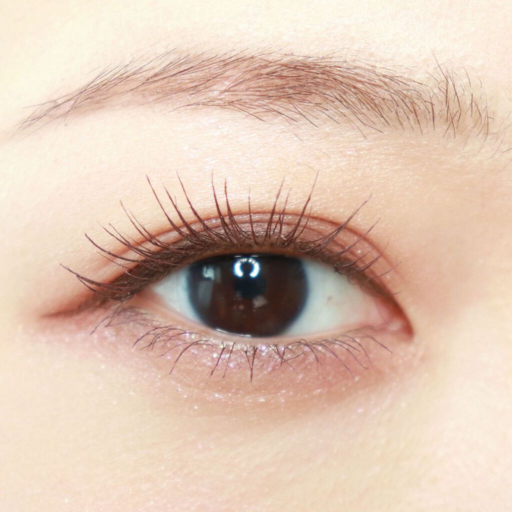 まず目のキワから二重幅よりも少し広めにGD803をのせます。先に陰影を仕込むようなイメージです。 次に目のキワから締め色としてRD518をのせます。あとからぼかすので、気持ち太めにのせています。 BE212をいままでのせたカラーとブレンドするようにアイホール全体にのせます。一気に柔らかさ、そしてツヤがでました。 下瞼にはRD518を目尻1/3にのせ、全体にBE212をのせて涙袋を少し強調します。指にちょこっとRS154をとり、黒目下あたりからキワあたりにグリッターで煌めきをプラスします。 先に陰影仕込みをしてぼかすようにして仕上げているので、ブラウンカラーを割ときちんとのせているのにナチュラル感もきちんとあります。 限定カラーはやっぱりちょこっとのせが可愛いですね。昼間は3色のみ、夕方以降などお出かけする時はお直しの際に限定カラーでラメをプラスしてイメージを変えるのもおすすめです。