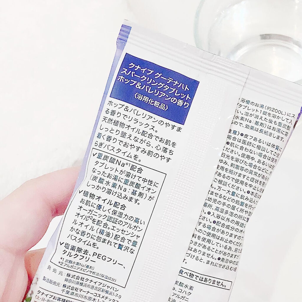 𓂃𓈒𓏸𓐍クナイプグーテナハトスパークリングタブレットホップ&バレリアンの香りクナイプってバスソルトのイメージだけどタブレットもあるんですね気になったので使ってみました^^*特長天然ハーブのエッセンシャルオイルを配合した重炭酸Na*1配合入浴料...