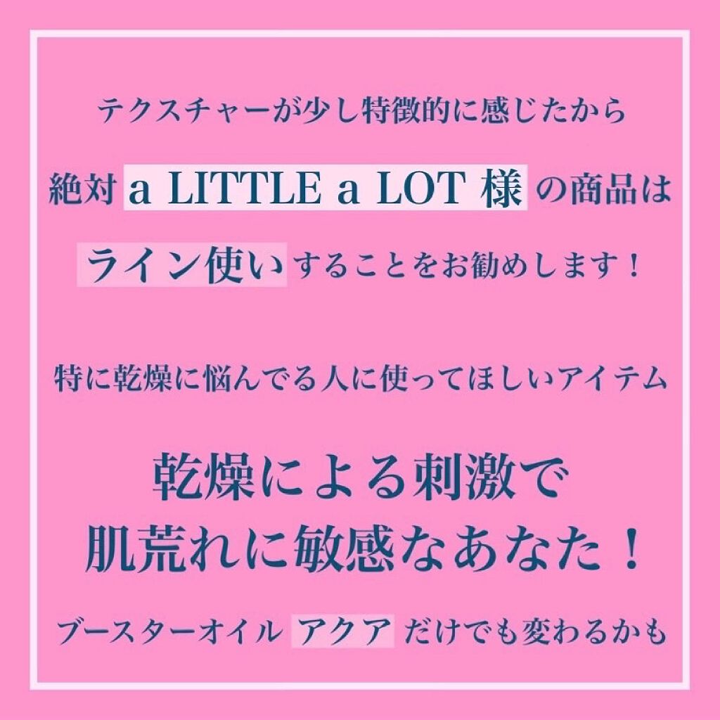 【使った商品】aLITTLEaLOT◆ブースターオイルケア、マイルドケアローション、マイルドケアエマルジョン、マイルドケアクリーム【商品の特徴】◆乾燥肌や敏感肌のキメを整いながら潤いを守る。【どんな人におすすめ?】◆マスク生活が続き乾燥が気に...