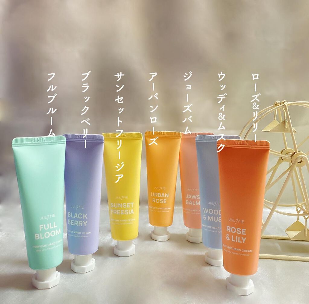 保湿力は特別高いわけではありませんが、ベタつかない程度に潤してくれるのが使いやすいと感じました。 7日7香り❗️ このハンドクリームは香りが1番のポイントだと思っています♪ 個人的にジョーズバームという香りが爽やかだけど、甘いような絶妙な香りで好みでした