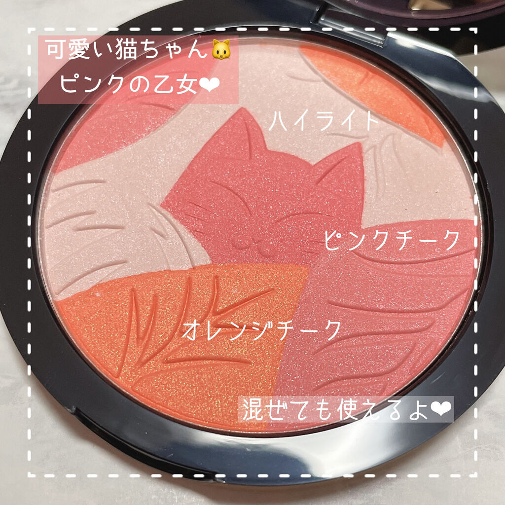 私が元気がないときに、大事なお友達がプレゼントしてくれた猫ちゃんチーク…🐱💕 自然できめ細かい! なめらかな粉質で、綺麗にフィット。 使いやすい配色! 柔らかな色味で使いやすく、肌の奥から血色感のあるような頬に。 立体顔が作れる! チーク、ハイライトを組み合わせて立体的な小顔に。 箱のパッケージがまず高級感があって綺麗🥺 フタはマグネットになっているので開け閉め簡単! 開けると中にも猫ちゃんが〜!!!!!!💕 使いたい〜!でももったいない〜!! もったいない気持ちが勝ってしまって、 触ることも出来ずスウォッチはできませんでした💦 でも塗ったら絶対可愛いやつですよこれは… 使うたびに猫ちゃんパワーをもらえそうです🥰 プレゼントしてくれてほんとうにありがとう〜! 01もオレンジが入っていてとっても可愛いカラーなので ぜひぜひチェックしてみてくださいね🐱♡