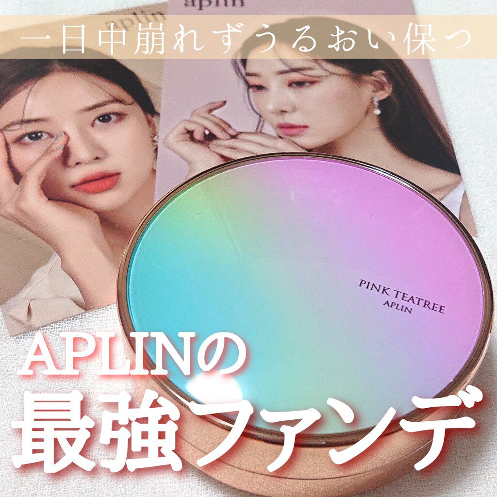 APLIN ピンクティーツリーカバークッション 21号ライトベージュ 2,490円(税込) 少量でよく伸びてハイカバー! 赤みやくすみをしっかりカバ一できるのに、厚塗り感のないなめらかな仕上がり♡ ハイカバーなのにナチュラルなツヤ感とサラッとしつつ、乾燥崩れしにくい仕上がりに感動します!!