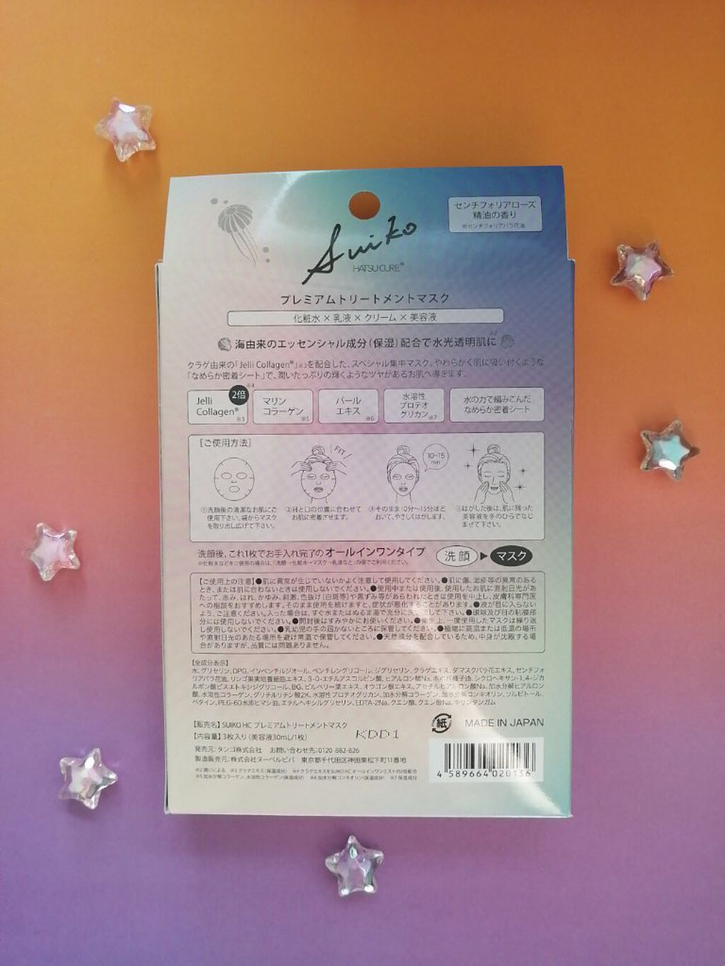 - クラゲ由来の生コラーゲンJelli collagen®※1をオールワンミストの2倍配合した、オールインワンマスク。4種の海由来のハリツヤ成分と、ダマスクバラ花エキス、ローズオイルと8種の美容保湿成分で、肌本来の力にアプローチ。濃厚美容液の密封ケアで、さらに輝きに満ちた、ふっくらツヤ肌へと導きます。※1クラゲエキス(保湿成分)