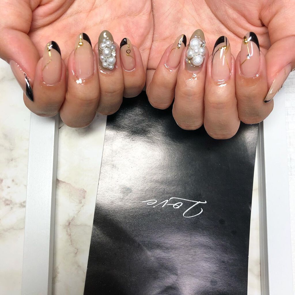 色々なパーツが入ったパーツセットを使用してデザインしてみました! 主にゴールドパーツでストーンやスタッズ、5ミリ程の細いパーツやパールも入っています✨ これ一つあれば色々組み合わせて楽しめるのでオススメです🫶