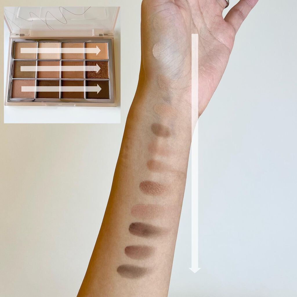 16色のアイパレット💡 ヌーディなピンクやラベンダーカラー🩷💜 カラーだけでなくマットやパール、グリッターなど豊富なので組み合わせが楽しい!! 透明感のあるメイク、スモーキーなメイクにも💖 発色もしっかりあるしラメ飛びもしにくく良いです😆✨