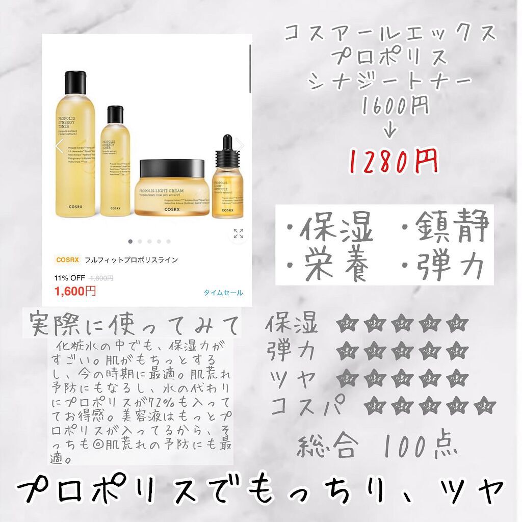 COSRX フルフィットプロポリスシナジートナー | 1,600円 |