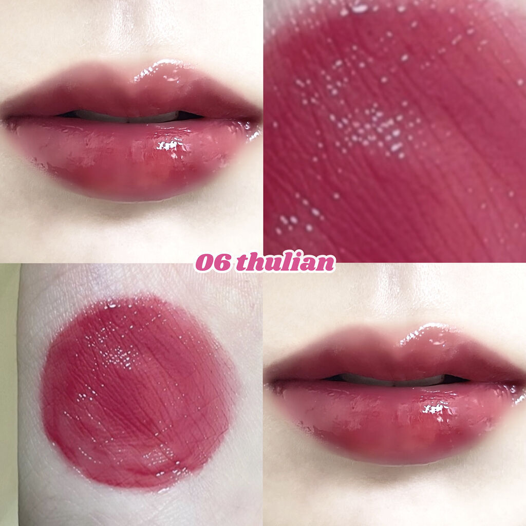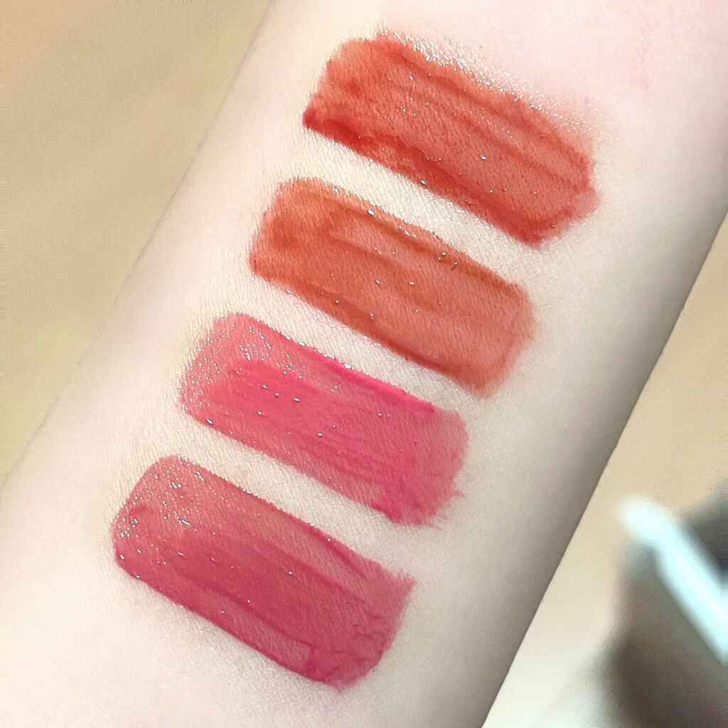 - <01 インコーラル> 水、ビスジグリセリルポリアシルアジペート-2、グリセリン、ジフェニルジメチコン、ジフェニルシロキシフェニルトリメチコン、ポリグリセリン-3、リンゴ酸ジイソステアリル、水添ポリイソブテン、ポリブテン、トリメチルシロキシフェニルジメチコン、変性アルコール、ポリソルベート60、イソノナン酸イソノニル、ペンチレングリコール、(アクリル酸ヒドロキシエチル/アクリロイルジメチルタウリンNa)コポ リマー、ラベンダーエキス、ハナハッカ花/葉/茎エキス、ローズマリーエキス、タイムエキス、ステアリン酸グリセリル、ステアリン酸PEG-100、スクワラン、ラウリルPEG-10トリス(トリメチルシロキシ)シリルエチルジメチコン、エチルヘキシルグリセリン、デキストリン、ステビオシド、イソステアリン酸ソルビタン、エチレンジアミンジコハク酸3Na、水酸化Al、ポリアクリル酸アンモニウム、BG、トコフェロール、フェノキシエタノール、香料、リモネン、酸化チタン、黄5、赤227、黄4、青1 <03 イフローズ> 水、ビスジグリセリルポリアシルアジペート-2、グリセリン、ジフェニルジメチコン、ジフェニルシロキシフェニルトリメチコン、ポリグリセリン-3、リンゴ酸ジイソステアリル、水添ポリイソブテン、ポリブテン、トリメチルシロキシフェニルジメチコン、変性アルコール、ポリソルベート60、イソノナン酸イソノニル、ペンチレングリコール、(アクリル酸ヒドロキシエチル/アクリロイルジメチルタウリンNa)コポリマー、ラベンダーエキス、ハナハッカ花/葉/茎エキス、ローズマリーエキス、タイムエキス、ステアリン酸グリセリル、ステアリン酸PEG-100、スクワラン、ラウリルPEG-10トリス(トリメチルシロキシ)シリルエチルジメチコン、エチルヘキシルグリセリン、デキストリン、ステビオシド、トリイソステアリン酸ポリグリセリル-2、イソステアリン酸ソルビタン、エチレンジアミンジコハク酸3Na、水酸化Al、ポリアクリル酸アンモニウム、BG、トコフェロール、フェノキシエタノール、香料、リモネン、酸化チタン、黄5、赤227、青1、黄4、赤218 <04 チリアップ> 水、ビスジグリセリルポリアシルアジペート-2、グリセリン、ジフェニルジメチコン、ジフェニルシロキシフェニルトリメチコン、ポリグリセリン-3、リンゴ酸ジイソステアリル、水添ポリイソブテン、ポリブテン、トリメチルシロキシフェニルジメチコン、変性アルコール、ポリソルベート60、イソノナン酸イソノニル、ペンチレングリコール、(アクリル酸ヒドロキシエチル/アクリロイルジメチルタウリンNa)コポ リマー、ラベンダーエキス、ハナハッカ花/葉/茎エキス、ローズマリーエキス、タイムエキス、ステアリン酸グリセリル、ステアリン酸PEG-100、スクワラン、ラウリルPEG-10トリス(トリメチルシロキシ)シリルエチルジメチコン、エチルヘキシルグリセリン、デキストリン、ステビオシド、イソステアリン酸ソルビタン、エチレンジアミンジコハク酸3Na、トコフェロール、BG、フェノキシエタノール、料、リモネン、黄5、赤227、黄4、青1 <06 チュリアン> 水、ビスジグリセリルポリアシルアジペート-2、グリセリン、ジフェニルジメチコン、ジフェニルシロキシフェニルトリメチコン、ポリグリセリン-3、リンゴ酸ジイソステアリル、水添ポリイソブテン、ポリブテン、トリメチルシロキシフェニルジメチコン、変性アルコール、ポリソルベート60、イソノナン酸イソノニル、ペンチレングリコール、(アクリル酸ヒドロキシエチル/アクリロイルジメチルタウリンNa)コポリマー、ラベンダーエキス、ハナハッカ花/葉/茎エキス、ローズマリーエキス、タイムエキス、ステアリン酸グリセリル、ステアリン酸PEG-100、スクワラン、ラウリルPEG-10トリス(トリメチルシロキシ)シリルエチルジメチコン、エチルヘキシルグリセリン、デキストリン、ステビオシド、イソステアリン酸ソルビタン、エチレンジアミンジコハク酸3Na、水酸化Al、ポリアクリル酸アンモニウム、BG、トコフェロール、フェノキシエタノール、香料、リモネン、酸化チタン、黄5、赤227、酸化鉄、黄4、赤218、青1 <08 ベリーディヴァイン> 水、ビスジグリセリルポリアシルアジペート-2、グリセリン、ジフェニルジメチコン、ジフェニルシロキシフェニルトリメチコン、ポリグリセリン-3、リンゴ酸ジイソステアリル、水添ポリイソブテン、ポリブテン、トリメチルシロキシフェニルジメチコン、変性アルコール、ポリソルベート60、イソノナン酸イソノニル、ペンチレングリコール、(アクリル酸ヒドロキシエチル/アクリロイルジメチルタウリンNa)コポリマー、ラベンダーエキス、ハナハッカ花/葉/茎エキス、ローズマリーエキス、タイムエキス、ステアリン酸グリセリル、ステアリン酸PEG-100、スクワラン、ラウリルPEG-10トリス(トリメチルシロキシ)シリルエチルジメチコン、エチルヘキシルグリセリン、イソステアリン酸ソルビタン、デキストリン、ステビオシド、エチレンジアミン