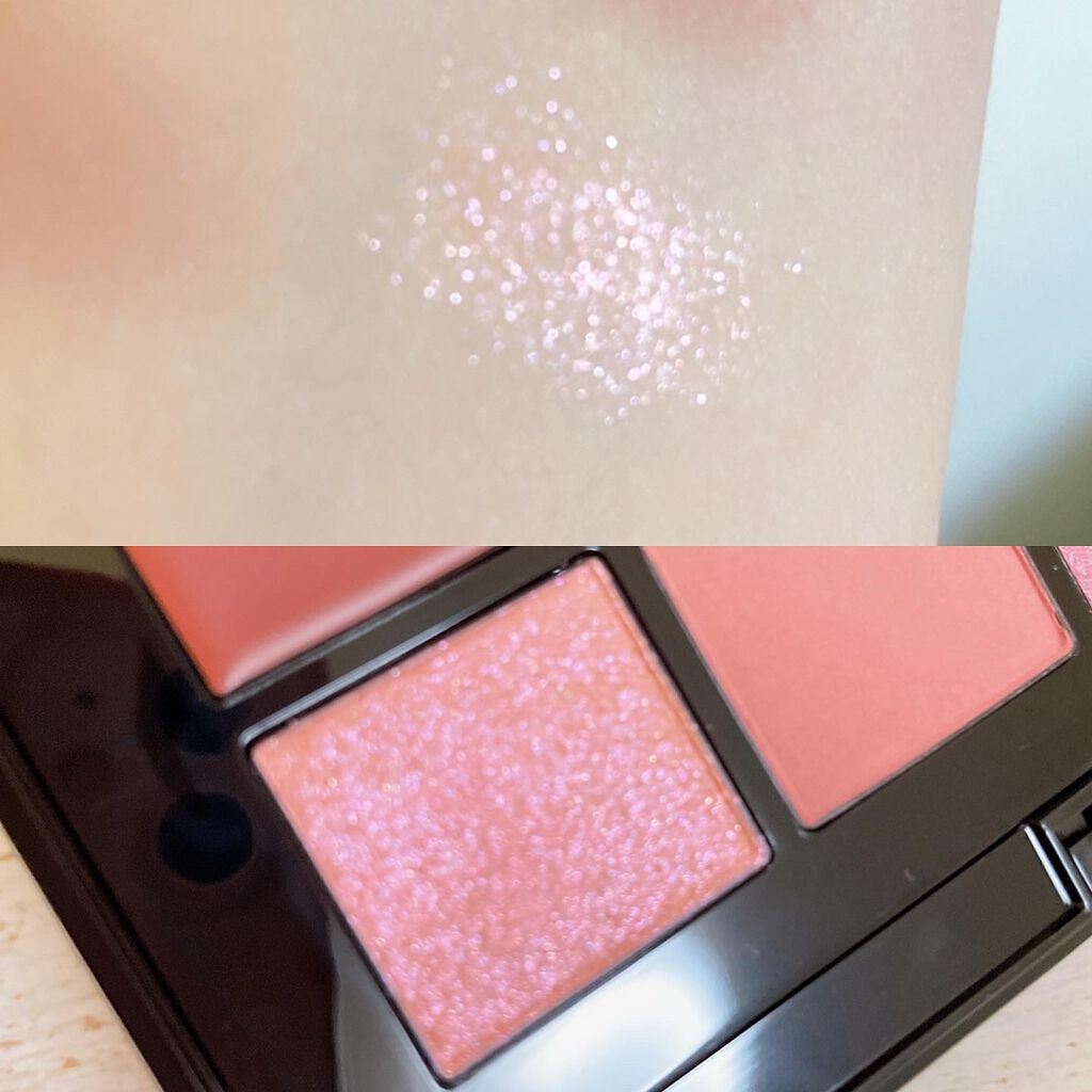 くすまず綺麗に発色してくれて 買ってしばらく経つけどお気に入りでよく使ってる! 左下のクリーム質感のカラーはべたついたり、次に塗るカラーをジャマしたり、ベースがヨレることなく使いやすい! マットだけでナチュラルに仕上げてもいいし、2種のラメを使って華やかに仕上げても楽しい♡