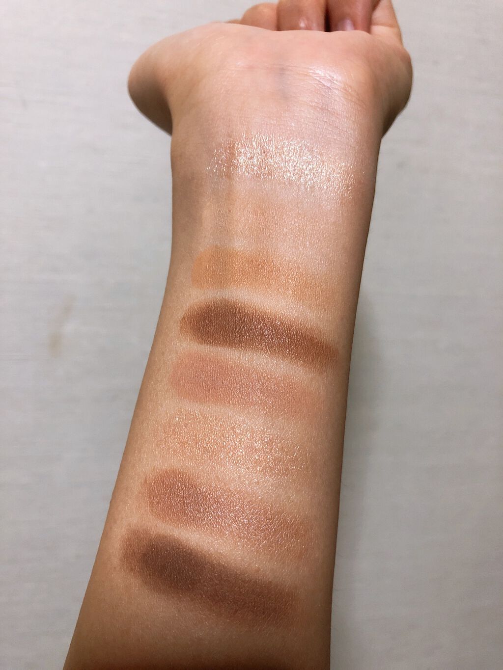 まず発色薄いです笑 ナチュラルメイクですかな。 あと、公式の画像とか見たかんじでは黄み寄りなのかなぁと思っていたんですけど、ほんのりピンク寄りな気がします。 左上のカラーがピンクすぎるのかなぁ🤔 右下も赤みのあるブラウン、ココアブラウン?みたいな。 左上使わないで他の3色でメイクすると公式画像のイメージっぽくなるのに左上使っちゃうと微妙になる。 粉質の良さとラメの可愛さはしっかりです。 でもべターザンアイズのシリーズ好きですよ。 マット3色(ベース・メイン・締め色)にラメ1色の構成って最高じゃね?って。塗るとき迷わないですし。 また新作に期待したいと思います。