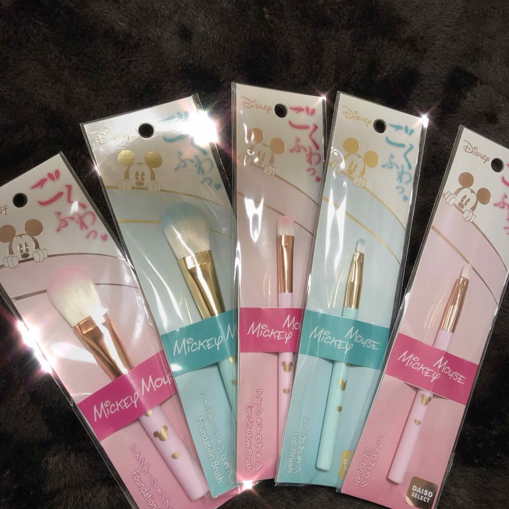 こんばんは😊 ミッキーのブラシ可愛いですよね❤️ 私もブルーが欲しくて探していますが… どこにも無くて…😢 北海道は入荷が遅いからかな?🤔💭 100均だとブラシも 惜しみ無く使えますよね😆💕