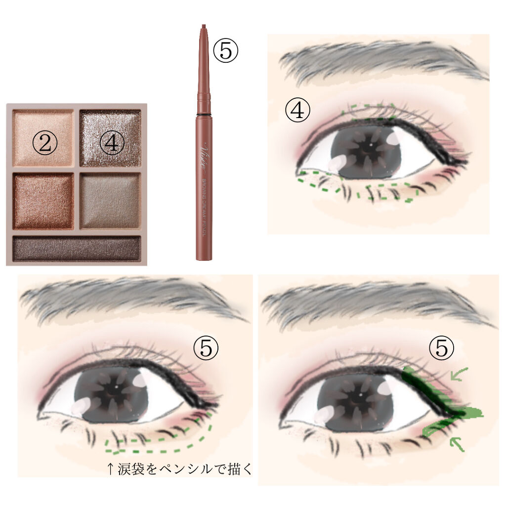カシスブラウンの濃い目のカシスカラー✨ これがすき!! ピンクブラウンの赤みカラー、これが好き!! なので、好きなカラーを合わせてメイクしました。 涙袋もピンクブラウンを使用。 なかなか良い組み合わせになりました♫