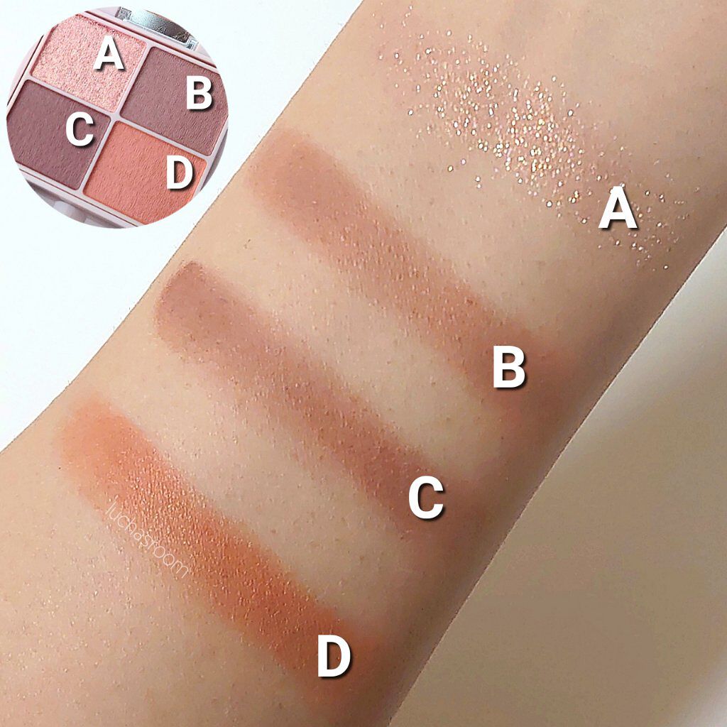 - シルキースフレアイズの姉妹品♡ 肌に溶け込むような透けマットシャドウ 透け感のある柔らかい仕上がりになるマット3色と、透け発色の繊細ラメ1色のパレットシャドウ♡ 完全マットアイや、ラメ×マットアイなど、メイクのパターンを楽しみましょう!