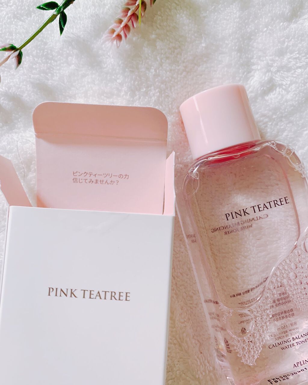 ティーツリーや、シカエキスを配合でニキビ、肌荒れ悩みをケアしてくれるトナー🩷 ピンク色は自然成分「ビタミンB12」本来の色だそう✨ サラサラテクスチャーで、さっぱりした使い心地✨