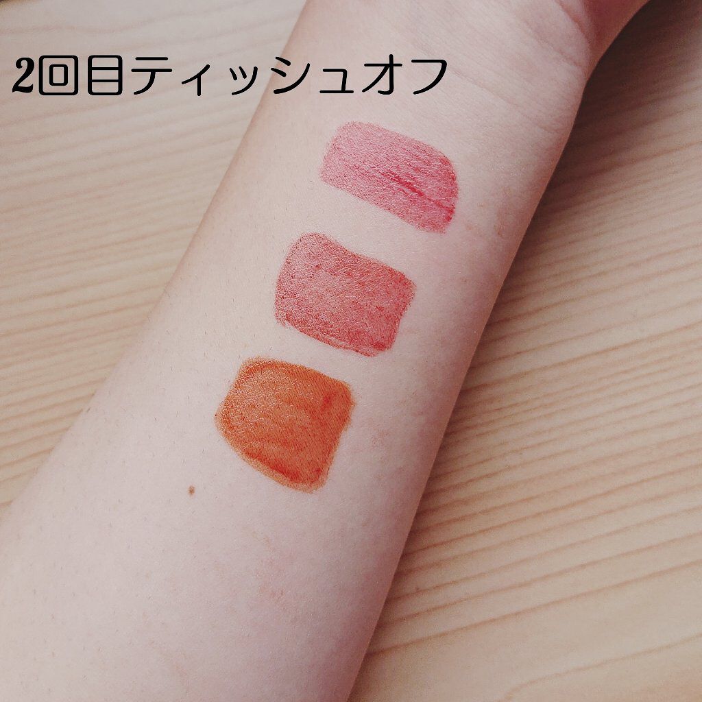 初めまして!!初めての投稿なので暖かい目でみてくださると嬉しいです🙇最初は大好きなCANMAKE様のジューシーリップティントです!全色レビューしていきたいと思います♡画像に書いてある通り、塗って、ティッシュオフを3回繰り返してみました。上から...