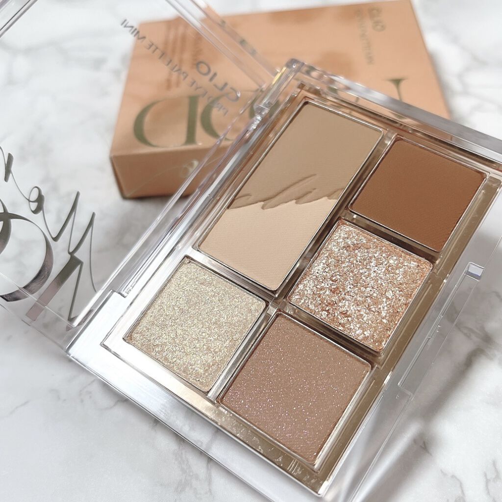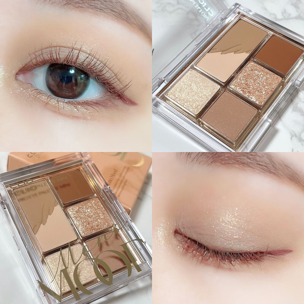 - 同系色陰影カラーと上品でクリアなグリッターの組み合わせの必要なカラーだけ詰め込んだミニアイパレット!