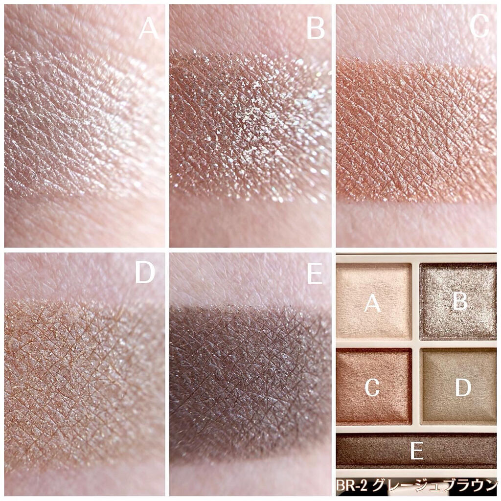 - <BR-1 ベージュブラウン> タルク・ジメチコン・リンゴ酸ジイソステアリル・合成金雲母・ホウケイ酸 (Ca/Al) ・メタクリル酸メチルクロスポリマー・水添ポリイソブテン・ミネラルオイル・トリエチルヘキサノイン・エチルヘキサン酸セチル・セスキステアリン酸ソルビタン・ヘキサ (ヒドロキシステアリン酸/ステアリン酸/ロジン酸) ジペンタエリスリチル・トコフェロール・ヒアルロン酸Na・ (ジメチコン/ビニルジメチコン) クロスポリマー・ (ビニルジメチコン/ラウリルジメチコン) クロスポリマー・イソドデカン・シリカ・スクワラン・トリエトキシカプリリルシラン・ナイロン-12・パラフィン・ラウリン酸亜鉛・ラウロイルグルタミン酸ジ (フィトステリル/オクチルドデシル) ・酸化スズ・水酸化Al・クロルフェネシン・グンジョウ・マイカ・酸化チタン・酸化亜鉛・酸化鉄・硫酸Ba <BR-2 グレージュブラウン> ジメチコン・タルク・ホウケイ酸 (Ca/Al) ・リンゴ酸ジイソステアリル・合成金雲母・メタクリル酸メチルクロスポリマー・水添ポリイソブテン・ミネラルオイル・トリエチルヘキサノイン・セスキステアリン酸ソルビタン・トコフェロール・ヒアルロン酸Na・ (ジメチコン/ビニルジメチコン) クロスポリマー・ (ビニルジメチコン/ラウリルジメチコン) クロスポリマー・イソドデカン・エチルヘキサン酸セチル・シリカ・スクワラン・トリエトキシカプリリルシラン・ナイロン-12・パラフィン・ヘキサ (ヒドロキシステアリン酸/ステアリン酸/ロジン酸) ジペンタエリスリチル・ラウロイルグルタミン酸ジ (フィトステリル/オクチルドデシル) ・酸化スズ・水酸化Al・クロルフェネシン・グンジョウ・マイカ・酸化チタン・酸化亜鉛・酸化鉄・硫酸Ba <BR-3 ピンクブラウン> ジメチコン・タルク・リンゴ酸ジイソステアリル・ホウケイ酸 (Ca/Al) ・メタクリル酸メチルクロスポリマー・水添ポリイソブテン・ミネラルオイル・合成金雲母・トリエチルヘキサノイン・エチルヘキサン酸セチル・セスキステアリン酸ソルビタン・ヘキサ (ヒドロキシステアリン酸/ステアリン酸/ロジン酸) ジペンタエリスリチル・トコフェロール・ヒアルロン酸Na・PET・ (ジメチコン/ビニルジメチコン) クロスポリマー・ (ビニルジメチコン/ラウリルジメチコン) クロスポリマー・イソドデカン・シリカ・スクワラン・トリエトキシカプリリルシラン・ナイロン-12・パラフィン・ラウロイルグルタミン酸ジ (フィトステリル/オクチルドデシル) ・酸化スズ・クロルフェネシン・カルミン・グンジョウ・コンジョウ・マイカ・酸化チタン・酸化亜鉛・酸化鉄・硫酸Ba・黄4・赤202・赤226 <BR-4 オレンジブラウン> タルク・ジメチコン・リンゴ酸ジイソステアリル・ホウケイ酸 (Ca/Al) ・メタクリル酸メチルクロスポリマー・合成金雲母・水添ポリイソブテン・ミネラルオイル・トリエチルヘキサノイン・エチルヘキサン酸セチル・セスキステアリン酸ソルビタン・ヘキサ (ヒドロキシステアリン酸/ステアリン酸/ロジン酸) ジペンタエリスリチル・トコフェロール・ヒアルロン酸Na・PET・ (ジメチコン/ビニルジメチコン) クロスポリマー・ (ビニルジメチコン/ラウリルジメチコン) クロスポリマー・イソドデカン・シリカ・スクワラン・トリエトキシカプリリルシラン・ナイロン-12・パラフィン・ラウロイルグルタミン酸ジ (フィトステリル/オクチルドデシル) ・酸化スズ・水酸化Al・クロルフェネシン・グンジョウ・マイカ・酸化チタン・酸化亜鉛・酸化鉄・硫酸Ba・赤202 <BR-5 カシスブラウン> ジメチコン・タルク・リンゴ酸ジイソステアリル・合成金雲母・メタクリル酸メチルクロスポリマー・ホウケイ酸 (Ca/Al) ・水添ポリイソブテン・ミネラルオイル・トリエチルヘキサノイン・エチルヘキサン酸セチル・セスキステアリン酸ソルビタン・ヘキサ (ヒドロキシステアリン酸/ステアリン酸/ロジン酸) ジペンタエリスリチル・トコフェロール・ヒアルロン酸Na・ (ジメチコン/ビニルジメチコン) クロスポリマー・ (ビニルジメチコン/ラウリルジメチコン) クロスポリマー・イソドデカン・シリカ・スクワラン・トリエトキシカプリリルシラン・ナイロン-12・パラフィン・ラウロイルグルタミン酸ジ (フィトステリル/オクチルドデシル) ・酸化スズ・クロルフェネシン・グンジョウ・マイカ・酸化チタン・酸化亜鉛・酸化鉄・硫酸Ba <BE-8 ピンクベージュ(限定)> ジメチコン・タルク・ホウケイ酸(Ca/Al)・リンゴ酸ジイソステアリル・メタクリル酸メチルクロスポリマー・水添ポリイソブテン・合成フルオロフロゴパイト・ミネラルオイル・トリエチルヘキサノイン・セスキステアリン酸ソルビタン・エチルヘキサン酸セチル・トコフェロール・ヒアルロン酸Na・(ジメチコン/ビニルジメチコン)クロスポリマー・(ビニルジメチコン/ラウリルジメチコン)クロスポリマー・イソドデカン・シリカ・スクワラン・トリエトキシカプリリルシラン・ナイロン-12・パラフィン・ヘキサ(ヒドロキシステア