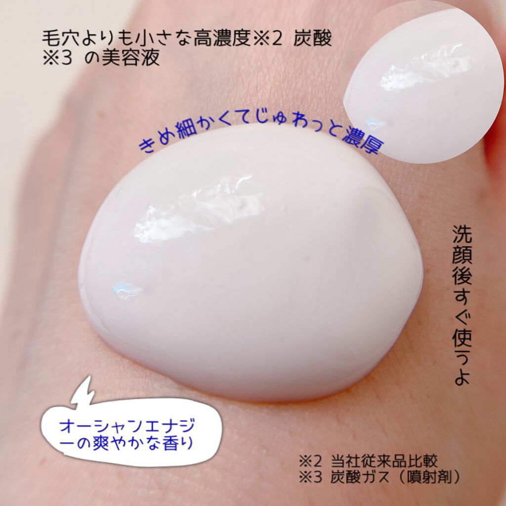 - 限定発売 高濃度炭酸の泡の美容液。 クリーミーな炭酸の泡がなめらかに広がり肌に密着。 美容液が角層最深部にじっくり浸透。肌表面をなめらかに。 肌をうるおいで柔らかくほぐし、次に使う美容液のなじみもアップ。 過酷な乾燥環境でこわばりがちな肌を、うるおい密度の高い肌へ デザインは選べる2タイプ♪サイズも今だけの限定サイズ!