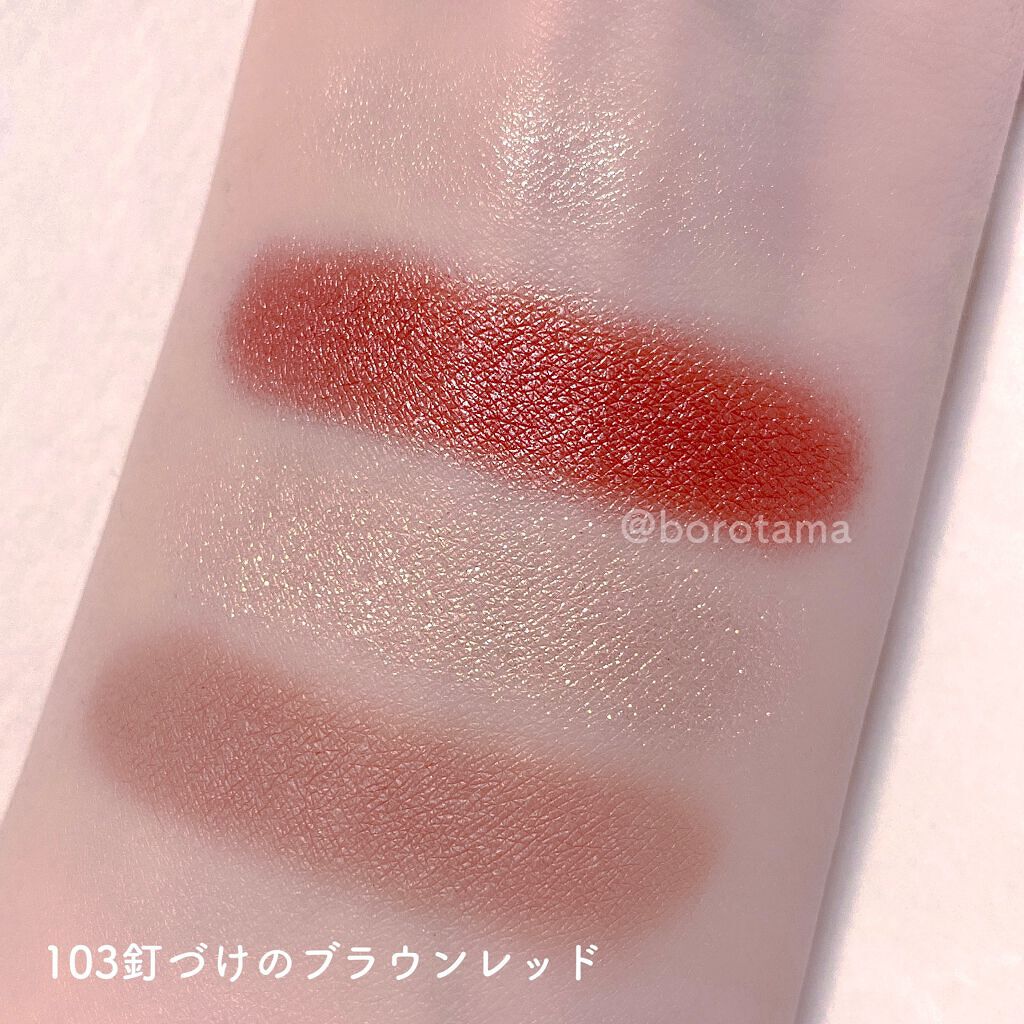 - <08 本気のブラウン> タルク、マイカ、酸化チタン、ホウケイ酸(Ca/チタン)、ホウケイ酸(Ca/Al)、酸化鉄、ポリメタクリル酸メチル、ヘキサ(ヒドロキシステアリン酸/ステアリン酸/ロジン酸)ジペンタエリスリチル、ミリスチン酸Mg、(ジメチコン/ビニルジメチコン)クロスポリマー、ナイロン-12、(フッ化/水酸化/酸化)/(Mg/K/ケイ素)、ラウリン酸ヘキシル、リンゴ酸ジイソステアリル、ステアロイルオキシステアリン酸オクチルドデシル、トリ(カプリル酸/カプリン酸)グリセリル、フェニルトリメチコン、シリカ、窒化ホウ素、ポリプロピレン、ホウケイ酸(Ca/Na)、ラウロイルリシン、ビスジグリセリルポリアシルアジペート-2、ステアリン酸Mg、カプリリルグリコール、ネオペンタン酸イソステアリル、ジメチコン、合成フルオロフロゴパイト、カプリル酸グリセリル、ミリスチン酸イソセチル、グンジョウ、銀、エチルヘキシルグリセリン、水酸化Al、トリエトキシカプリリルシラン、水添レシチン、酸化スズ、ハイドロゲンジメチコン、赤226、水、塩化Na、トコフェロール、硫酸Na <09 再会のピンク> タルク、マイカ、酸化チタン、ホウケイ酸(Ca/チタン)、ラウリン酸ヘキシル、リンゴ酸ジイソステアリル、フェニルトリメチコン、ミリスチン酸Mg、ナイロン-12、酸化鉄、ホウケイ酸(Ca/Al)、ステアロイルオキシステアリン酸オクチルドデシル、ヘキサ(ヒドロキシステアリン酸/ステアリン酸/ロジン酸)ジペンタエリスリチル、ポリメタクリル酸メチル、ビスジグリセリルポリアシルアジペート-2、ポリプロピレン、合成フルオロフロゴパイト、シリカ、ステアリン酸Mg、トリ(カプリル酸/カプリン酸)グリセリル、ポリメチルシルセスキオキサン、ネオペンタン酸イソステアリル、ジメチコン、カプリリルグリコール、トリエトキシカプリリルシラン、カプリル酸グリセリル、(ジメチコン/ビニルジメチコン)クロスポリマー、エチルヘキシルグリセリン、グンジョウ、赤226、水酸化Al、酸化スズ、カルミン、水、塩化Na、硫酸Na、トコフェロール <103 ハッピーエディション【新】> タルク、マイカ、ホウケイ酸(Ca/チタン)、酸化チタン、合成フルオロフロゴパイト、ジメチコン、トリ(カプリル酸/カプリン酸)グリセリル、ポリプロピレン、ポリメタクリル酸メチル、ジフェニルシロキシフェニルトリメチコン、酸化鉄、ヘキサ(ヒドロキシステアリン酸/ステアリン酸/ロジン酸)ジペンタエリスリチル、ビスジグリセリルポリアシルアジペート-2、リンゴ酸ジイソステアリル、ミリスチン酸Mg、(ジメチコン/ビニルジメチコン)クロスポリマー、ダイマージリノール酸(フィトステリル/イソステアリル/セチル/ステアリル/ベヘニル)、フェニルトリメチコン、ダイマージリノール酸ダイマージリノレイルビス(ベヘニル/イソステアリル/フィトステリル)、ジヘプタン酸ネオペンチルグリコール、ホウケイ酸(Ca/Al)、ジエチルヘキサン酸ネオペンチルグリコール、ラウリン酸ヘキシル、ポリイソブテン、ポリメチルシルセスキオキサン、カプリリルグリコール、ポリエチレン、ラウロイルリシン、カプリル酸グリセリル、ステアロイルオキシステアリン酸オクチルドデシル、エチルヘキシルグリセリン、ミリスチン酸イソセチル、酸化スズ、グンジョウ、スオウ樹皮エキス、トリエトキシカプリリルシラン、水添レシチン、カルミン、水酸化Al、赤226、水、トコフェロール、塩化Na、硫酸Na、コチニール等(カルミン) <104 ときめきのポッピンラメ【新】> ホウケイ酸(Ca/Al)、マイカ、タルク、ジヘプタン酸ネオペンチルグリコール、ポリイソブテン、リンゴ酸ジイソ ステアリル、ホウケイ酸(Ca/チタン)、酸化チタン、ポリプロピレン、シリカ、ヘキサ(ヒドロキシステアリン酸/ ステアリン酸/ロジン酸)ジペンタエリスリチル、(ジメチコン/ビニルジメチコン)クロスポリマー、ポリエチレン、酸化鉄、ホウケイ酸(Ca/Na)、合成フルオロフロゴパイト、ポリメタクリル酸メチル、トリ(カプリル酸/カプリ ン酸)グリセリル、ミリスチン酸Mg、ダイマージリノール酸(フィトステリル/イソステアリル/セチル/ステアリ ル/ベヘニル)、ビスジグリセリルポリアシルアジペート-2、カプリリルグリコール、カプリル酸グリセリル、銀、酸化スズ、エチルヘキシルグリセリン、赤226、硫酸Ba、トリエトキシカプリリルシラン、トコフェロール