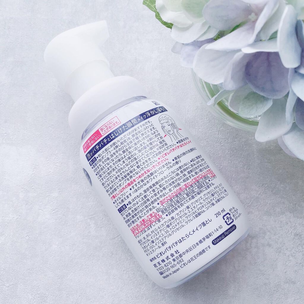 - パチパチと泡がはじけてメイクを浮かし落とすメイク落とし。“まさつレス’'な落とし方で持続ファンデ、ウォータープルーフUVまで落とします。 オイルフリー。 まつエクOK(※シアノアクリレート系のグルーを使用したまつ毛エクステンションに使えます)。 すすぎ後の洗顔はいりません。 素肌の時の洗顔料としても使えます。 ほのかなホワイトフローラルの香り。