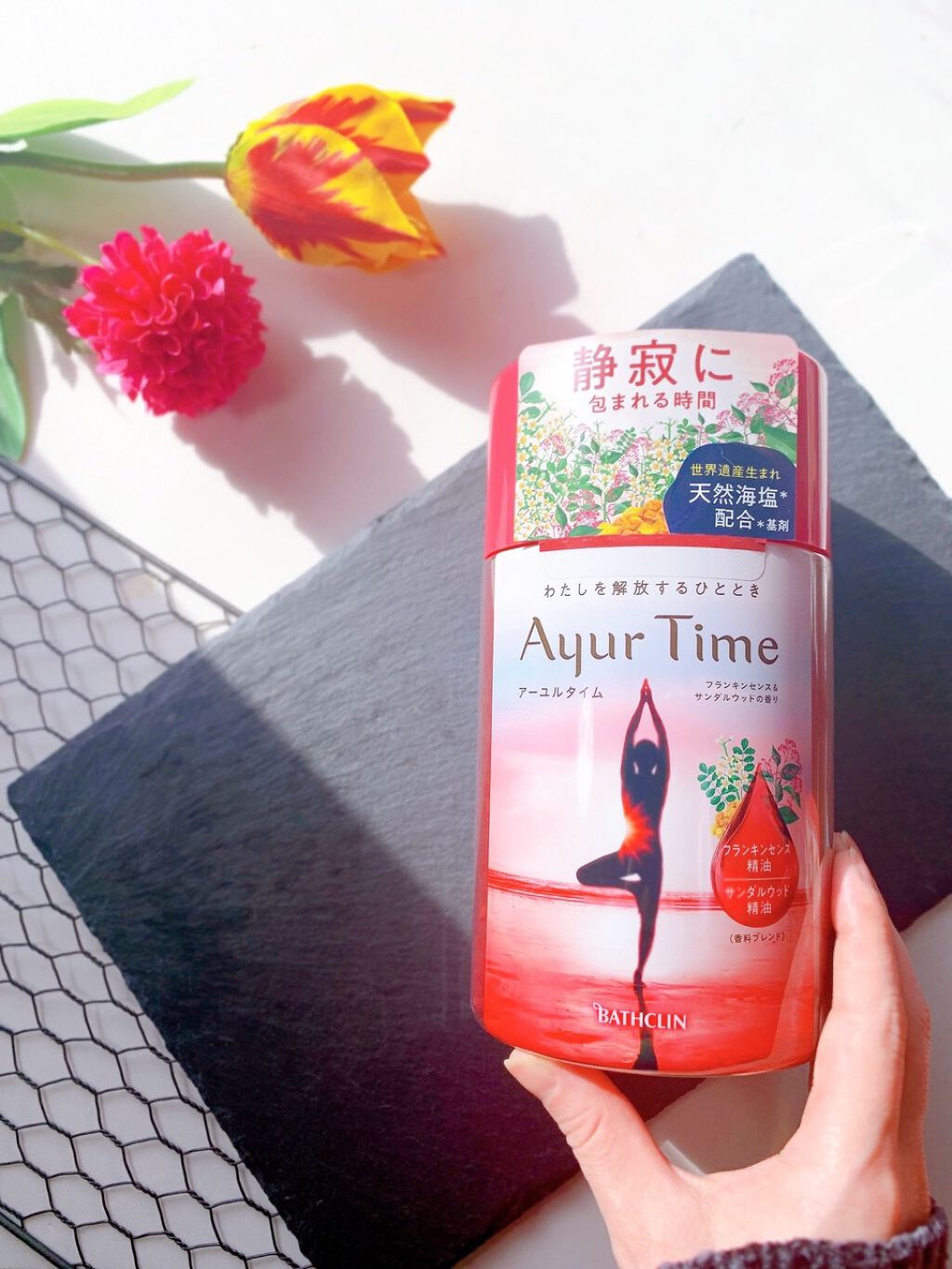 今夜の入浴剤はわたしを整えるひととき Ayu Time(アーユルタイム) 真っ赤なお風呂が情熱的でしょ❤️🔥 溶けるのが早くて香りもよろしいのよ。 植物系保護成分配合ヒマラヤンラズベリーエキス オーガニックセサミオイル