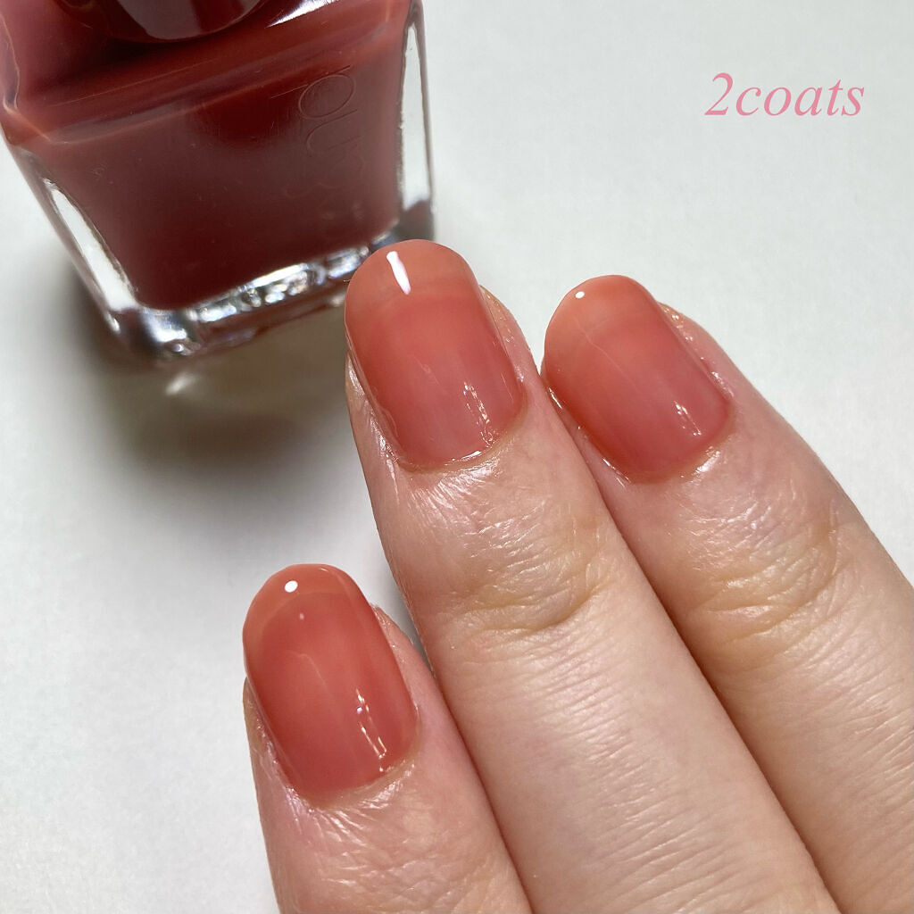 ジューシーな桃の果汁みたいなくすみピンクって感じでめっちゃかわゆい🥹🍑 なんといってもお手頃価格なのが嬉しい!ネイルって発色とかムラになりやすさとかわかんないからこのくらいの価格だと手に取りやすい! 光に当たるとちゅるんってしてめっちゃ可愛いよー🥹💕